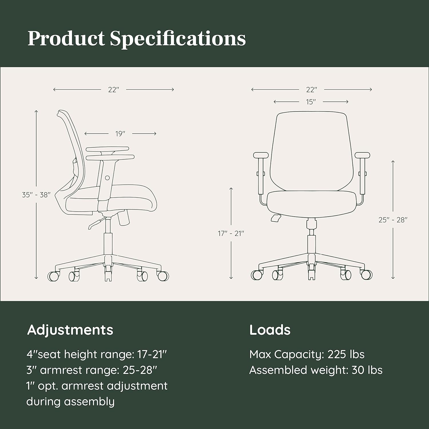 - Product Dimensions : 22"D x 22"W x 38"H