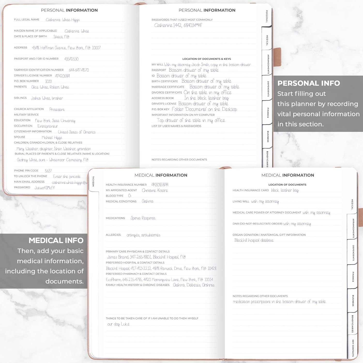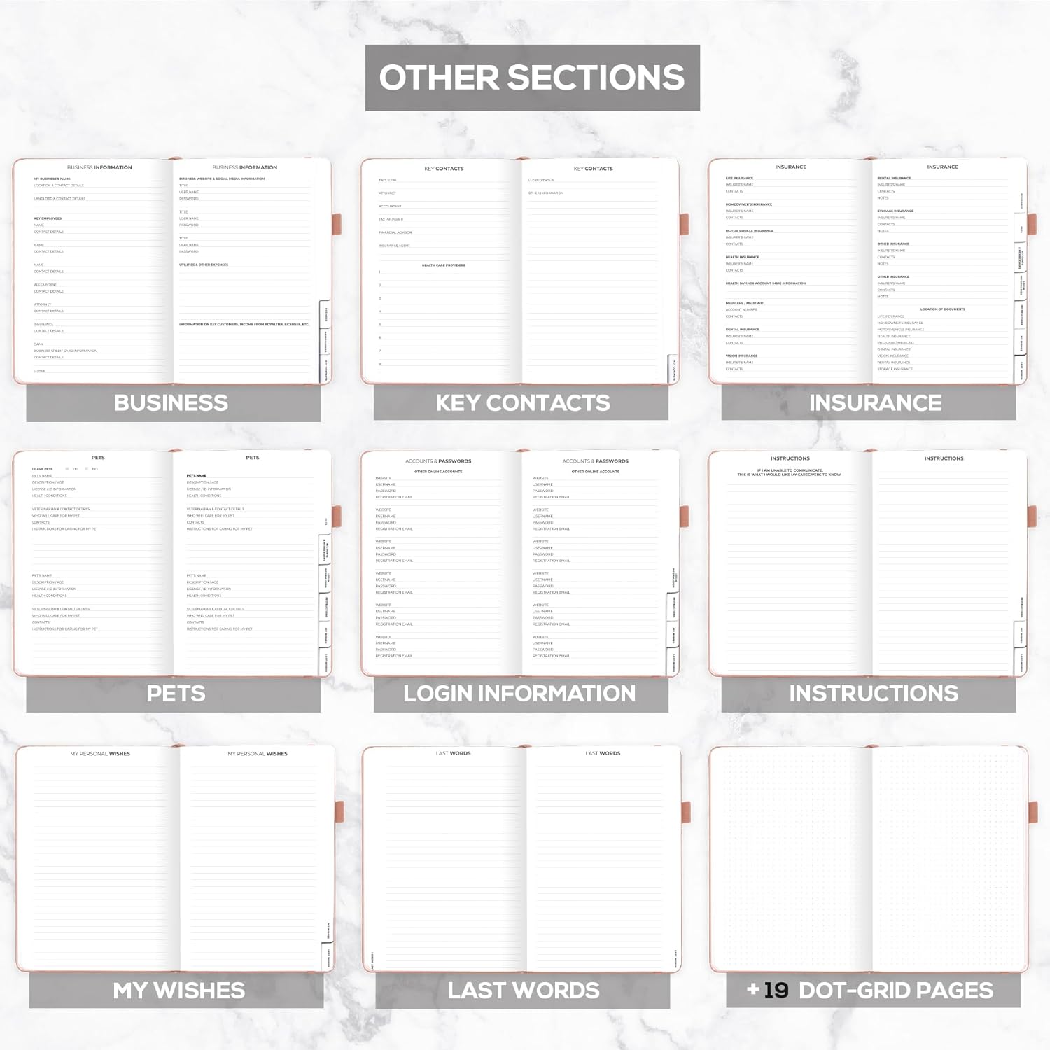 - PREPARE DETAILED INSTRUCTIONS TO GUIDE YOUR LOVED ONES: This guided final arrangements planner is an easy-to-use tool for organizing all essential personal information, from medical data to passwords and financial records.