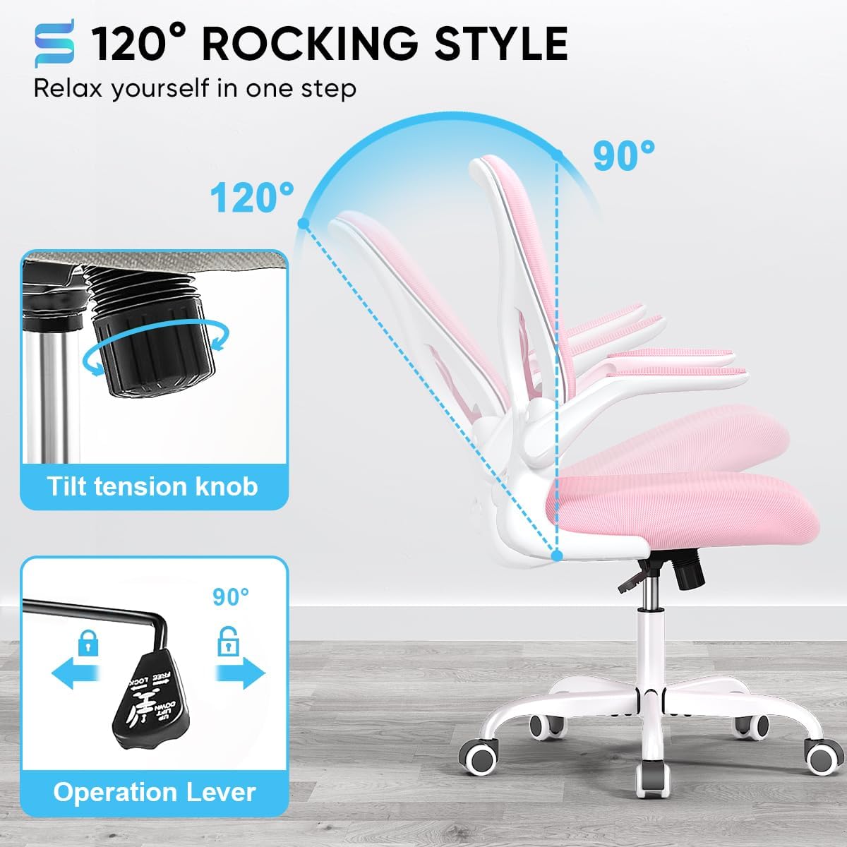 Sytas Ergonomic Desk Chair with Padded Flip up Arms and Supportive Lumbar Support, Breathable Mesh Home Office Chair with Comfortable Cushion for Home or Office(Pink)