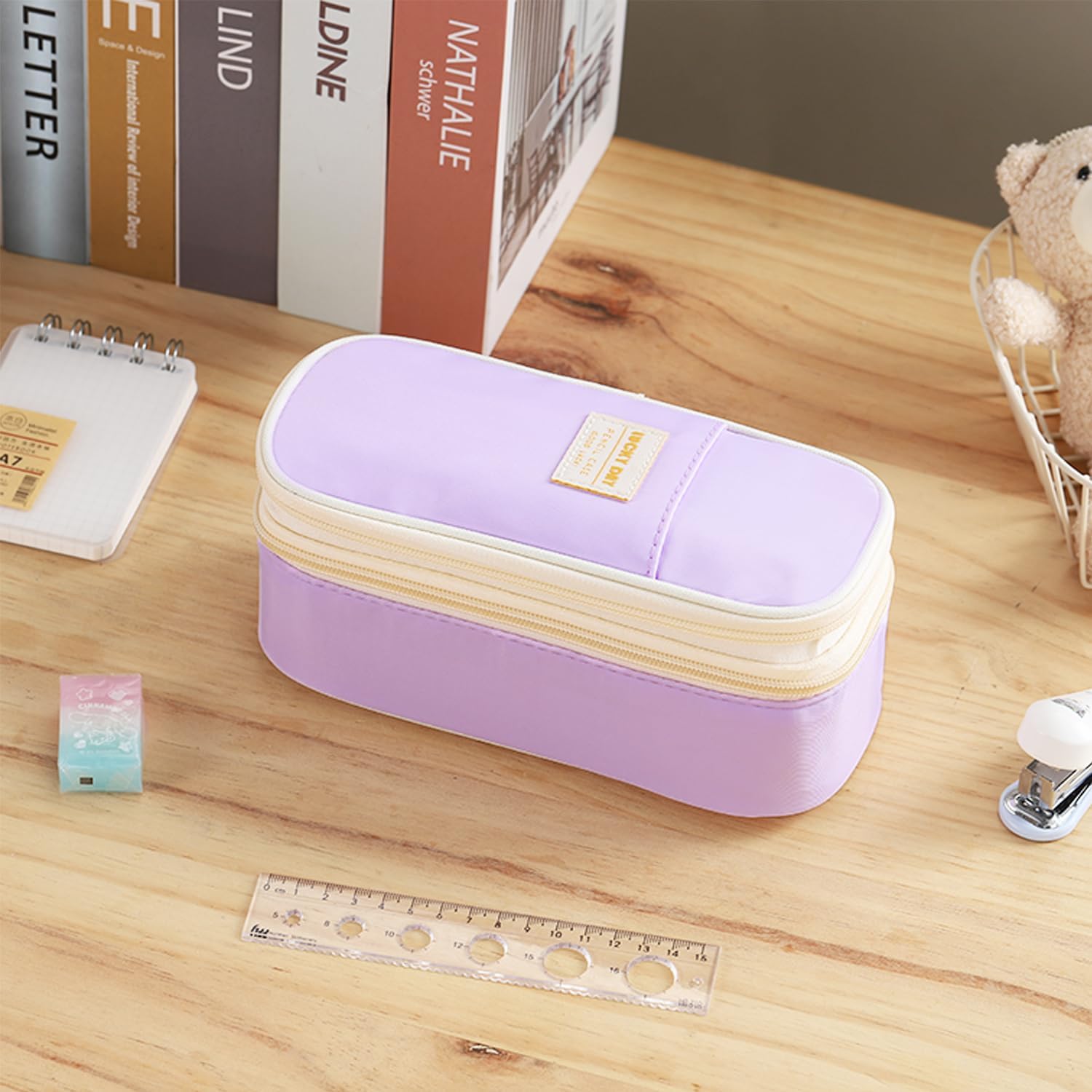 - Large Capacity: The Dimensions is 9.06'' x 4.33'' x 3.54'' This pencil case allows up to 80-100 pens/pencils, 20 cm ruler, pencil sharpener and other stationery gadgets.