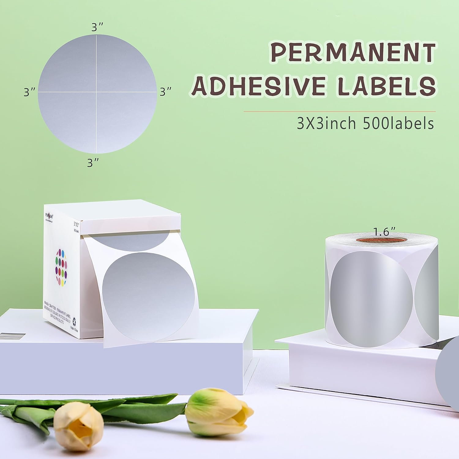 - 500pcs coding adhesive labels on a roll. 3” diameter, Silver Color-Code Dot Stickers.