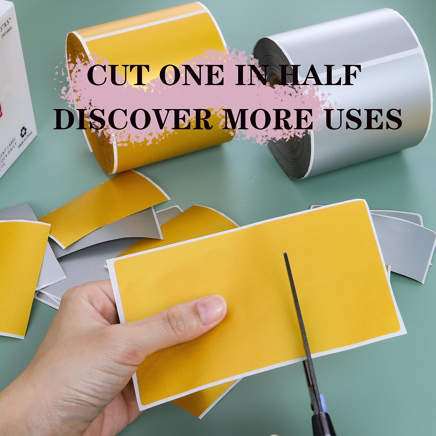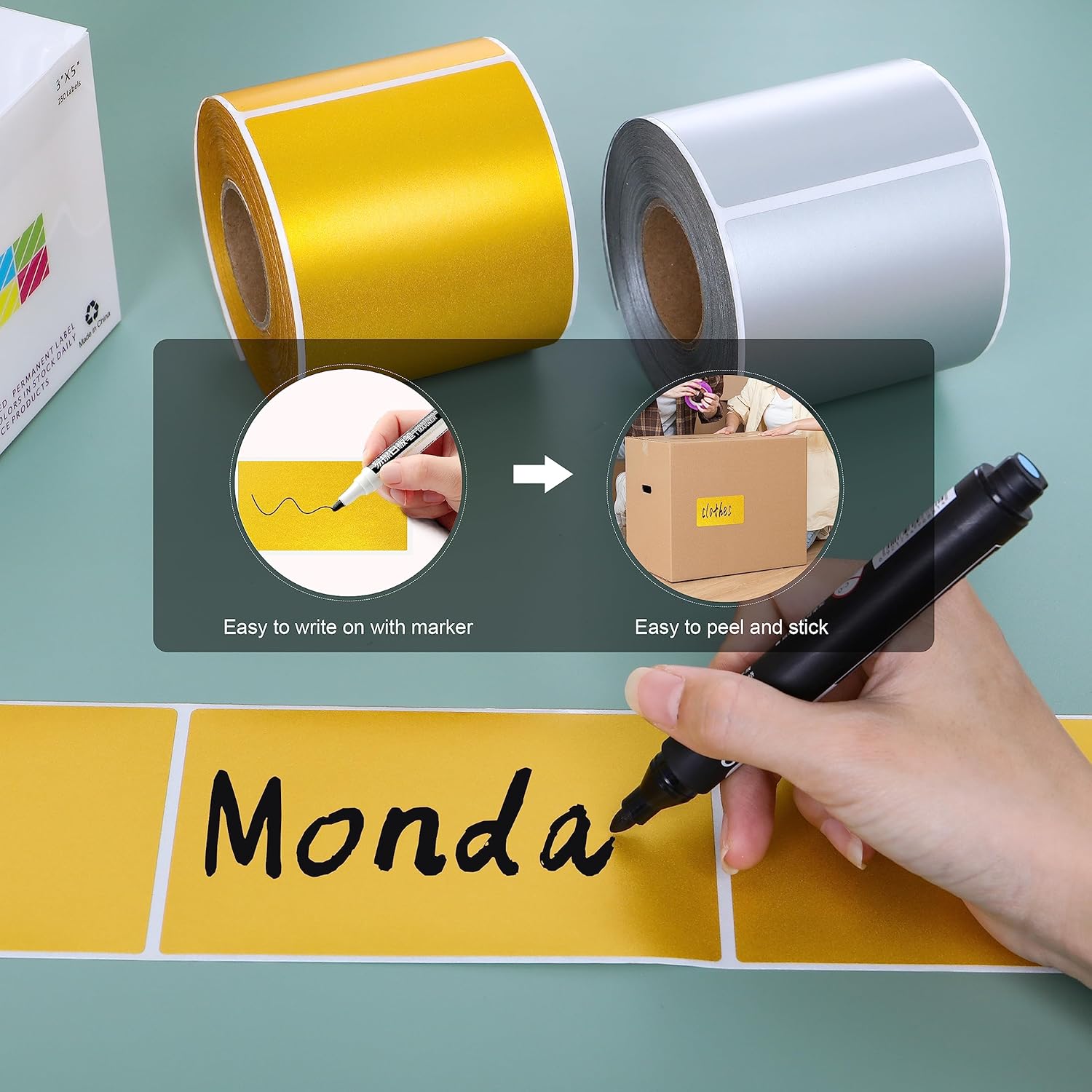 - 250pcs coding adhesive labels on a roll. 3”x 5" diameter, Gold Color-Code Rectangle Stickers.