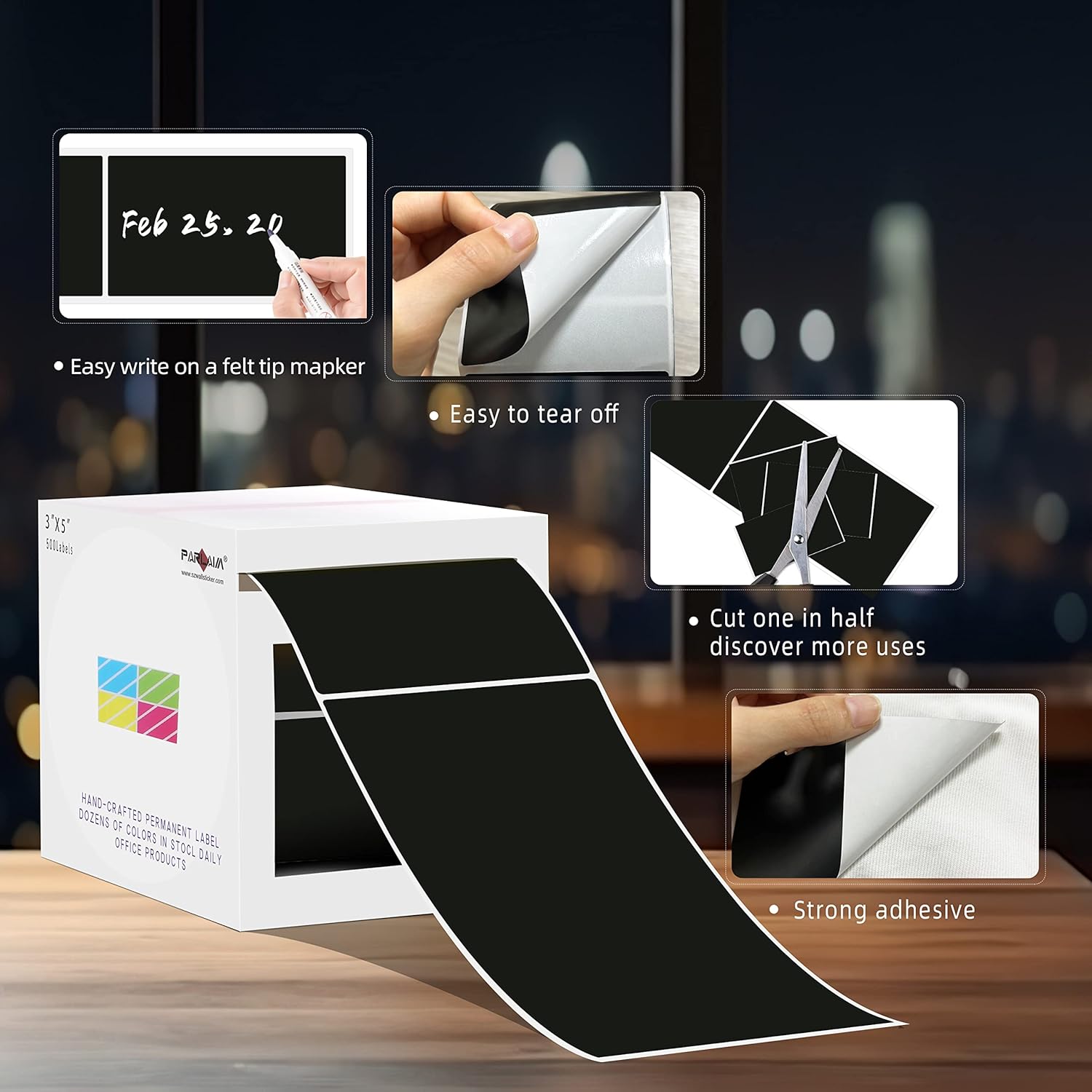 PARLAIM 5" x 3" Rectangle Color Coding Labels,500 per Inventory Labels Color Code Stickers Dispenser Box,Roll Black Sticker Labels for Inventory,Family School Storage Bins Label (Black)