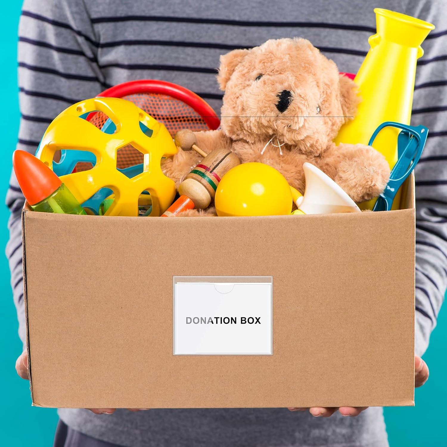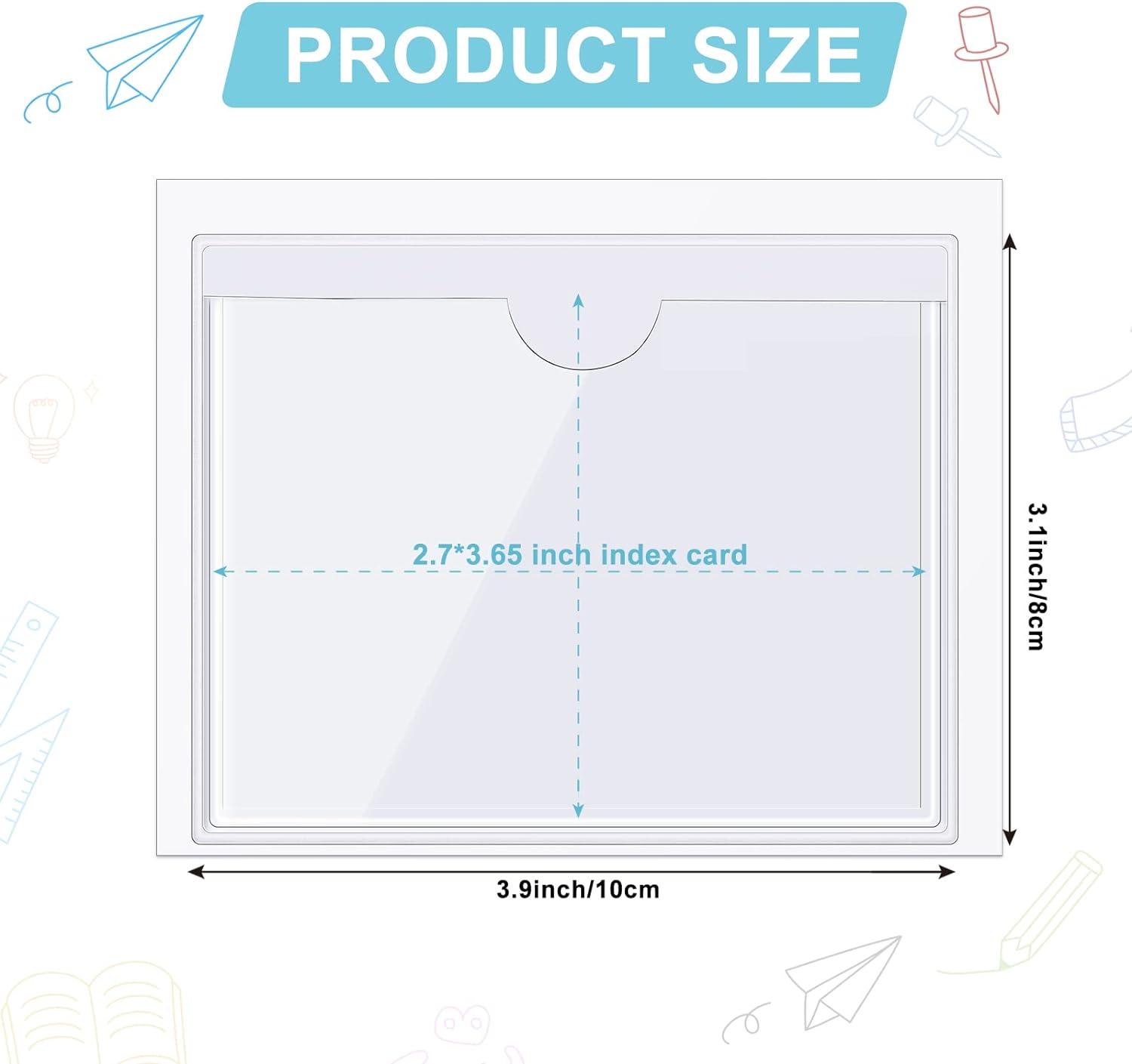 - Applicable Cards:the outer size of clear adhesive pockets is 3.1 x 3.9 inches,fits cards up to2.7 x 3.65 inches.You will recieve 50 self-adhesive card holder for labels, waterproof, dustproof, and fingerprint-resistant.