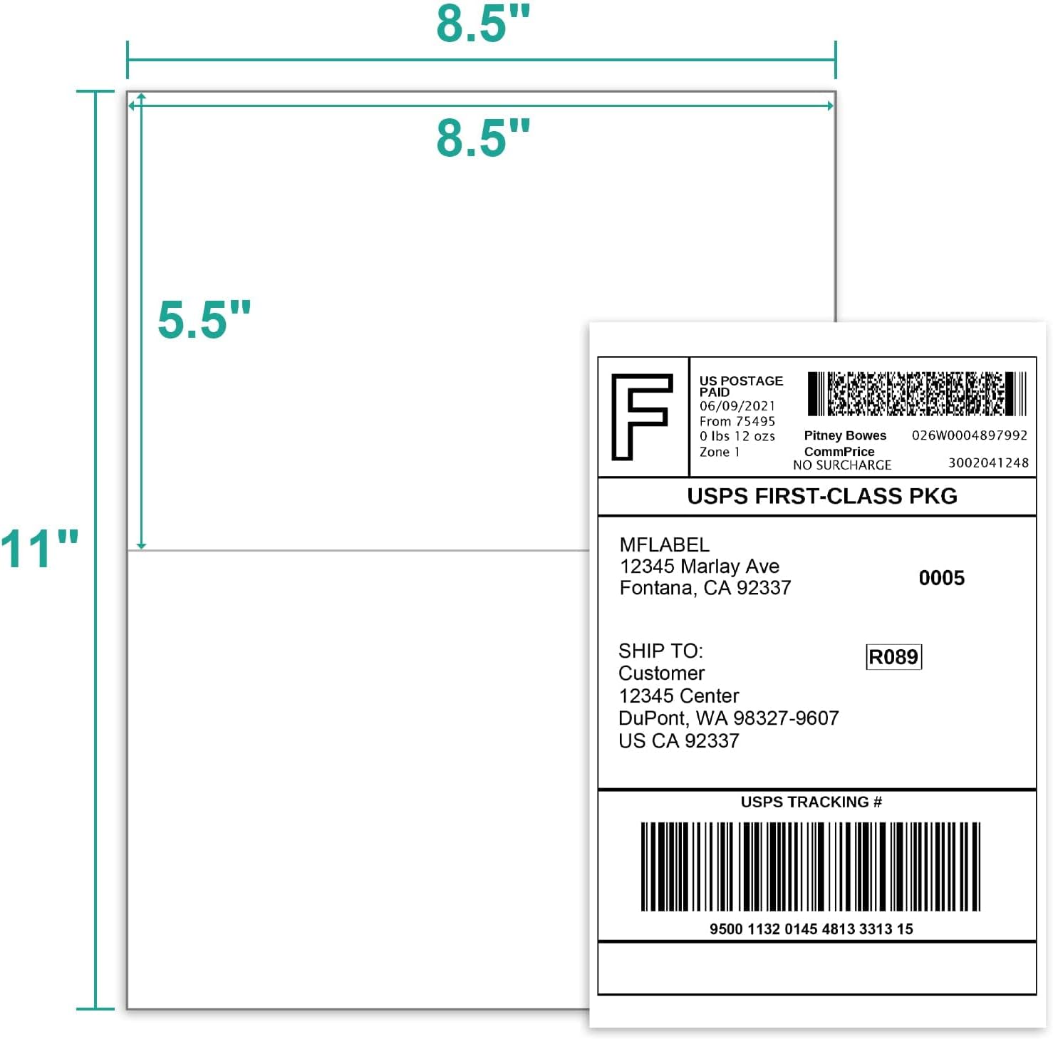 MFLABEL Half Sheet Label Laser/Ink Jet Shipping Label 8.5 x 11 Inches Packaging Labels, Address Labels for Laser & Inkjet Printers, 1600 Count(800 Sheets)