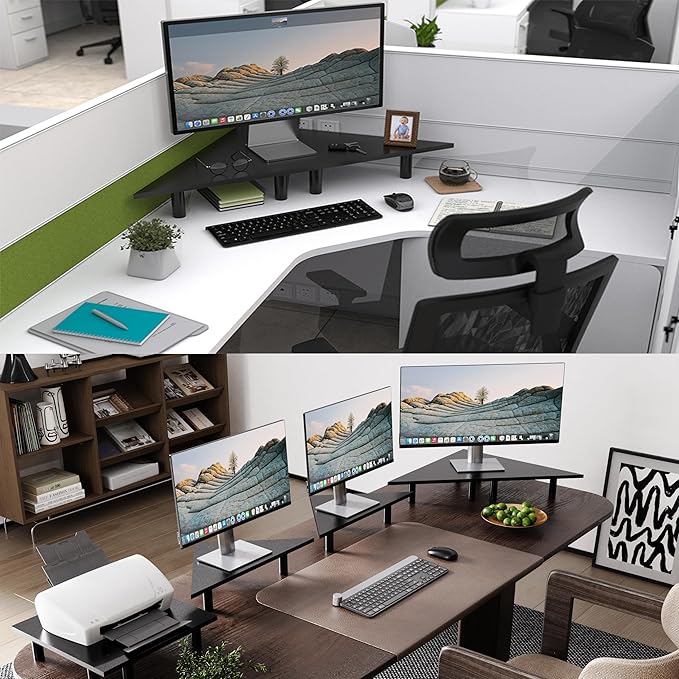 - 【Versatile Design】 The WEGASTU 2 Pack White Corner Monitor Stand features a triangle/square design, perfect for computers, laptops, PCs, iMacs, and printers, saving desk space and enhancing productivity.