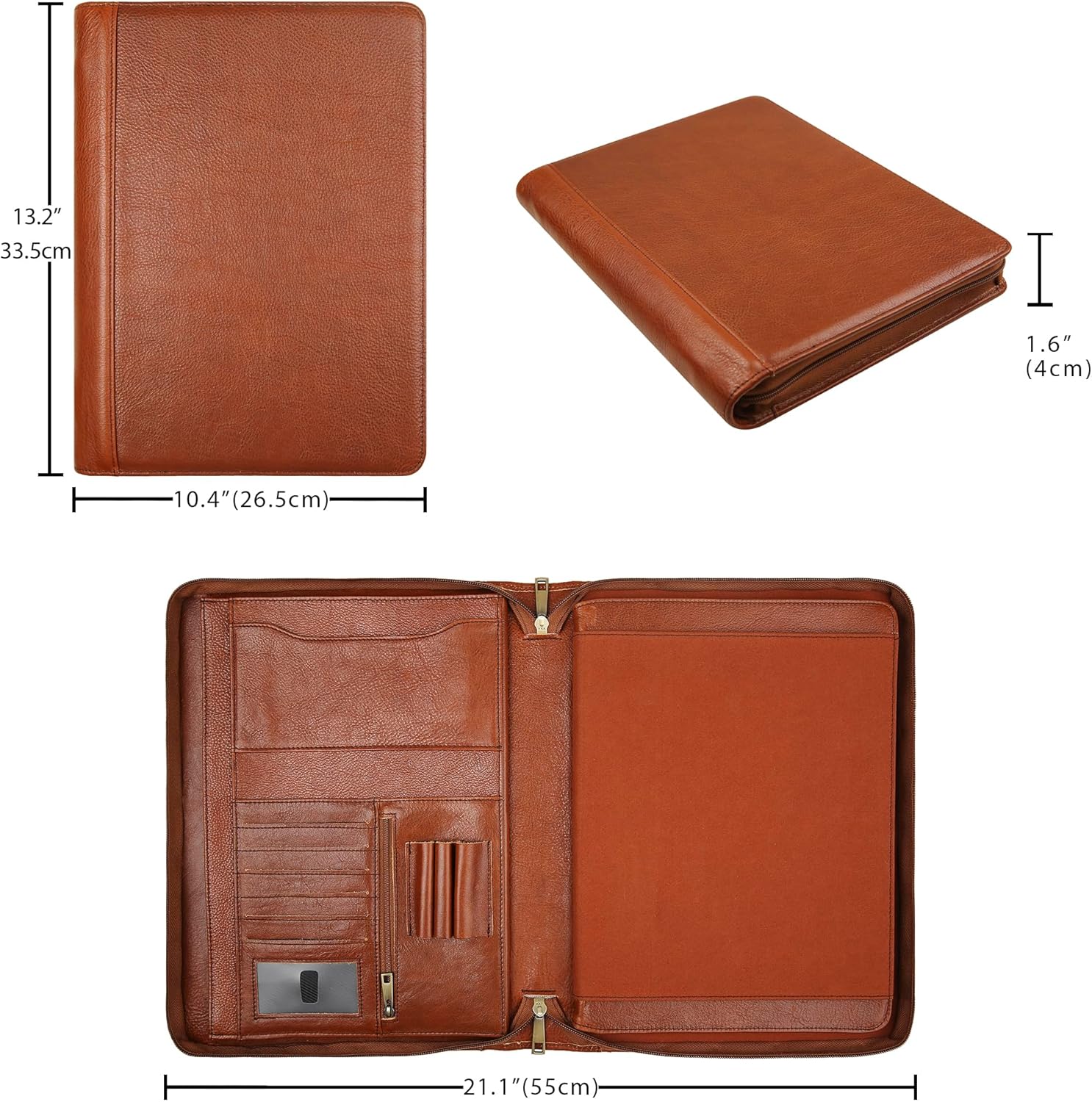 Personalized Leather Portfolio Organizer for IPad/Document, Business Padfolio with A4 Leather Notepad Holder, Custom Leather Compact Folder Conference Portfolio for Men and Women, Oil-Brown