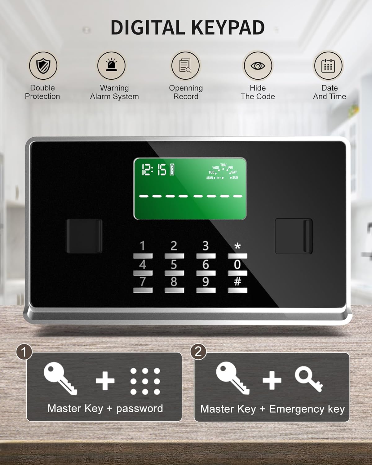 - ✅【DOUBLE SAFETY KEY LOCK】:Tigerking safe has dual safety key unlocking function, dual key unlocking increases security. There are 2 unlocking methods: 1. Dual key unlocking; 2. Master key + password unlocking, NOTE:The master key is always need to open the safe , with this design, even some one get your code, without the master key , they still can not access to the safe.
