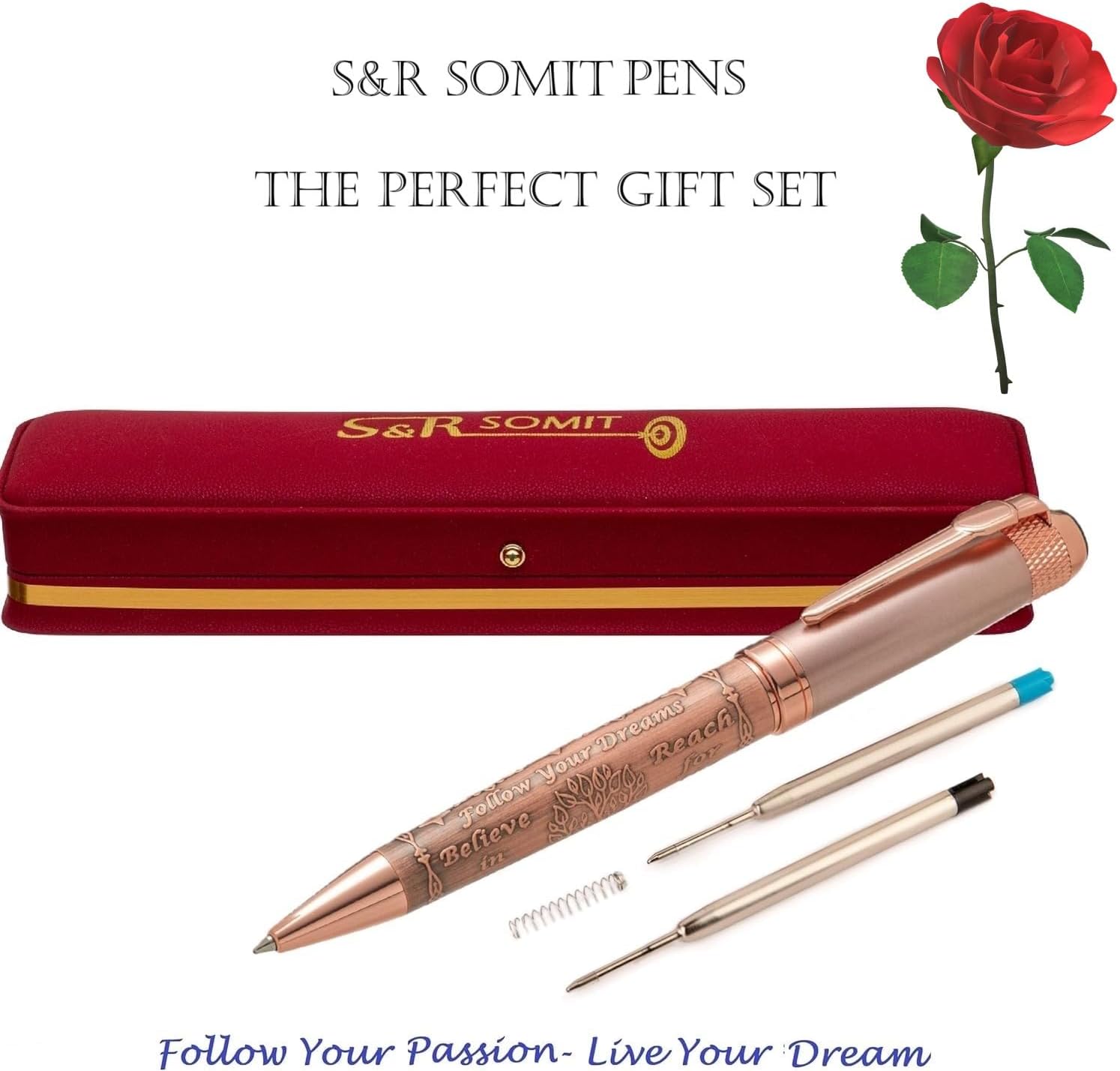 S&R Somit Fancy Pen with Gift Box - Luxury Pen for Women ā Valuable Business, Office, Executive Gift for Family & Friends ā Special Engraving & Led Decorative Box (GOLDEN ROSE)