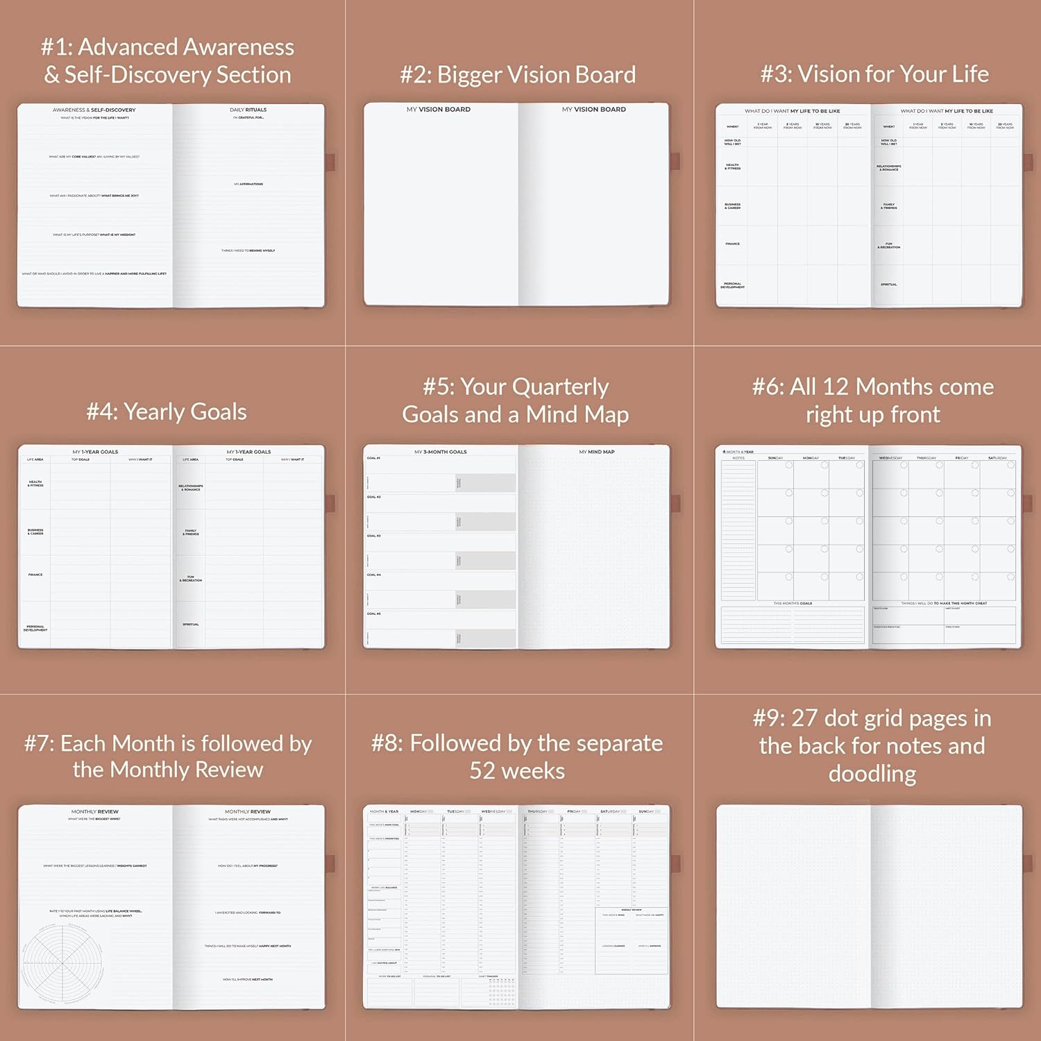 - TOP QUALITY, USER GUIDE & STICKERS - This planner and organizer for women and men comes with stickers, and user guide, an eco-leather cover, thick 120gsm paper, an elastic band, a pen loop, and lay-flat binding.