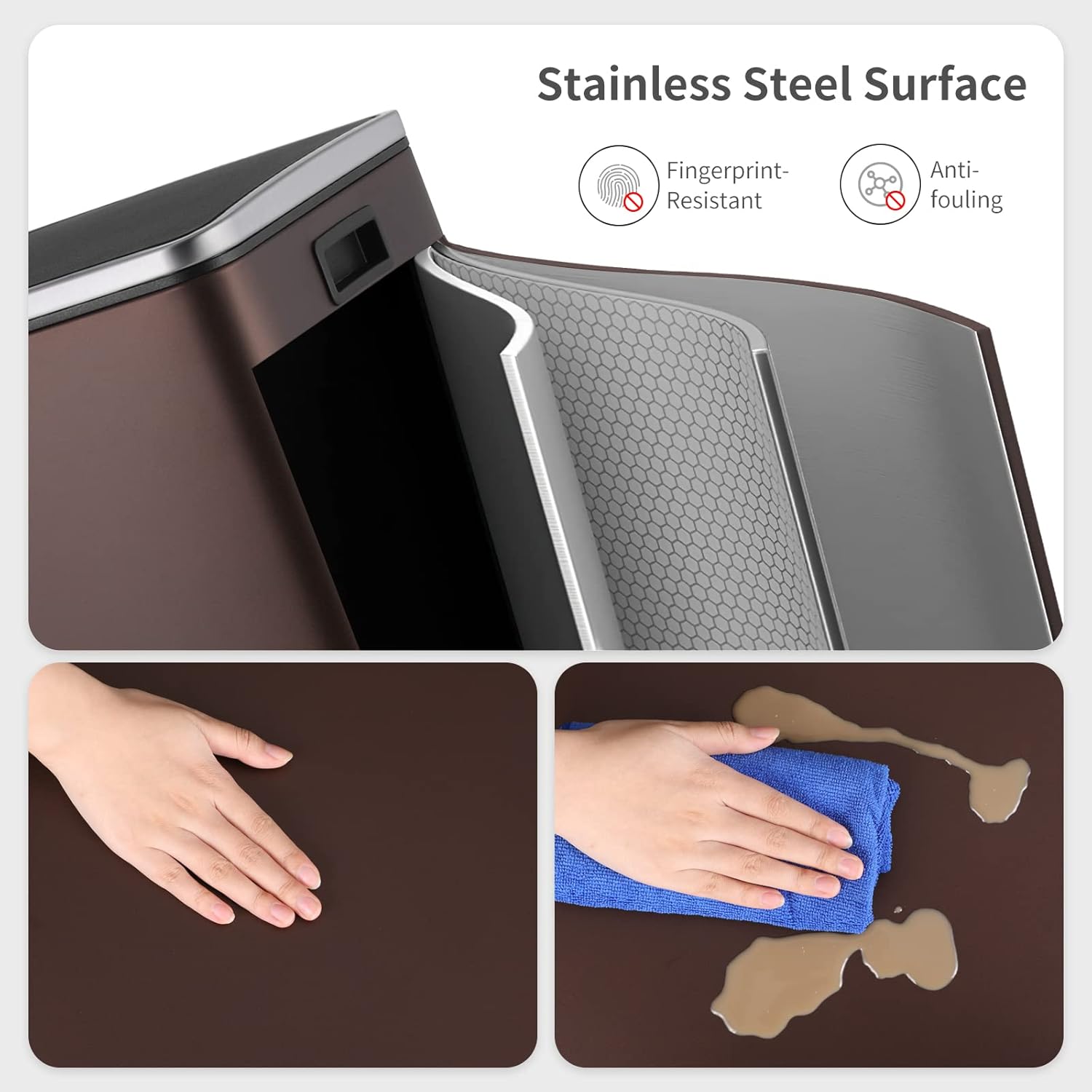 - 2*8 GALLONS COMPARTMENTS: Trash can has two independently compartments for trash and recyclables, making it easy to sort waste.