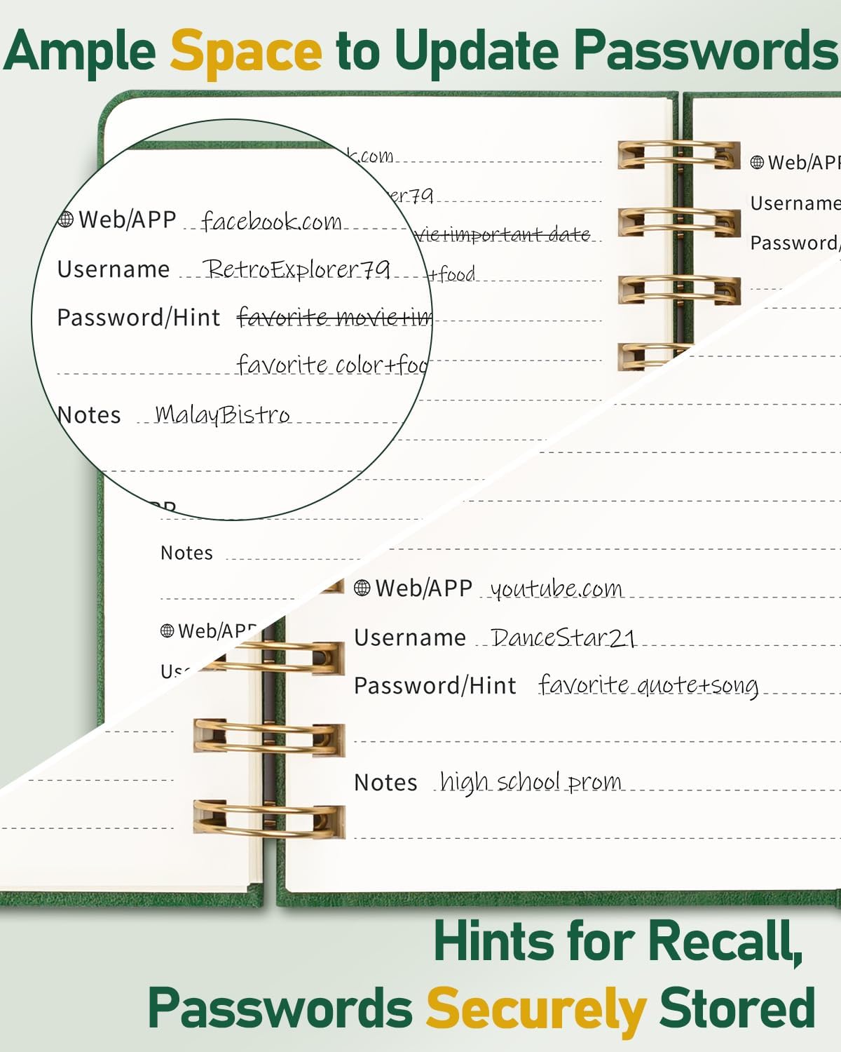 - Never Forget Passwords Again: Record 468 passwords, with space for updates; Say goodbye to password woes! Secure Pass Keeper Book keeps you covered