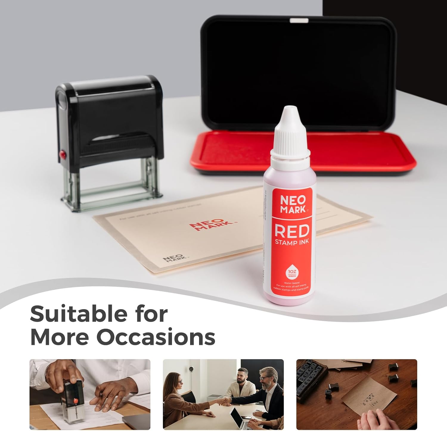 - 【Broad Applicability】1 oz red ink. Refill any water-based stamp pad, date stamp, self inking stamp.