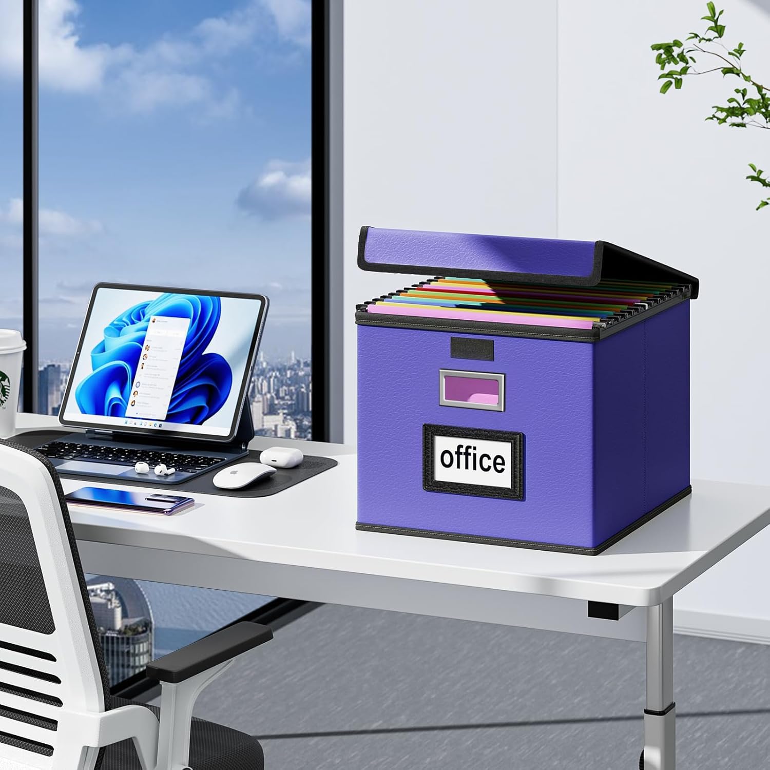 - Collapsible Multifunctional Filing Storage Organizer - The outer box with leather can be dustproof, inside and the bottom support is made of thickened cardboard, which is environmentally friendly and not easily deformed. The cover with Velcro not only allows us to cover the file box easily, but provides more storage space for the file. It also acts as a small filing cabinet for tax documents, legal files and other documents storage. When we are not using it, we can fold it up to save space.