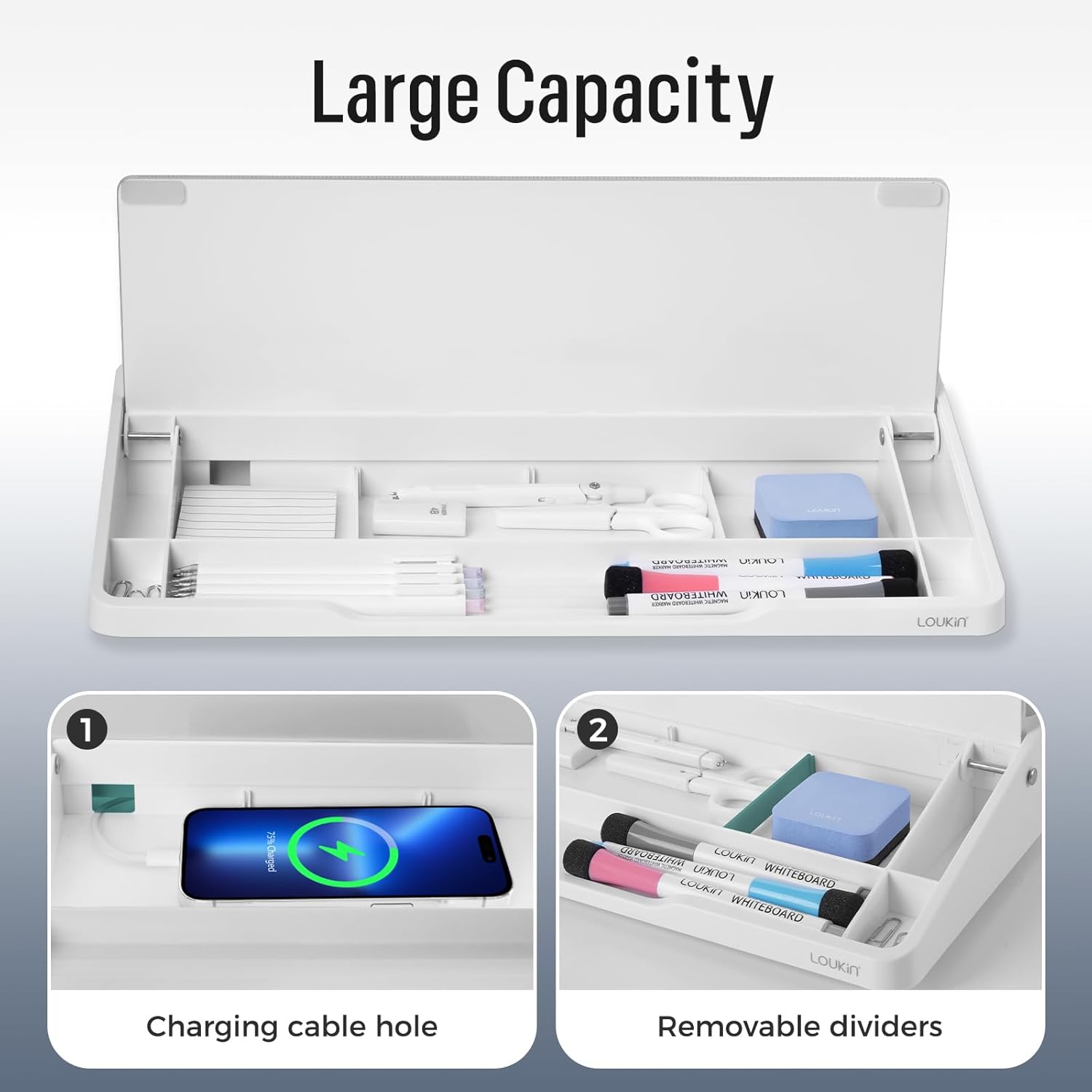 - Space-Saving & Adjustable: With 3 removable divider, freely allocate inner storage space. Large capacity, suitable for storing phones, pens, erasers and other stationery. keep the desk neat and maximize work area