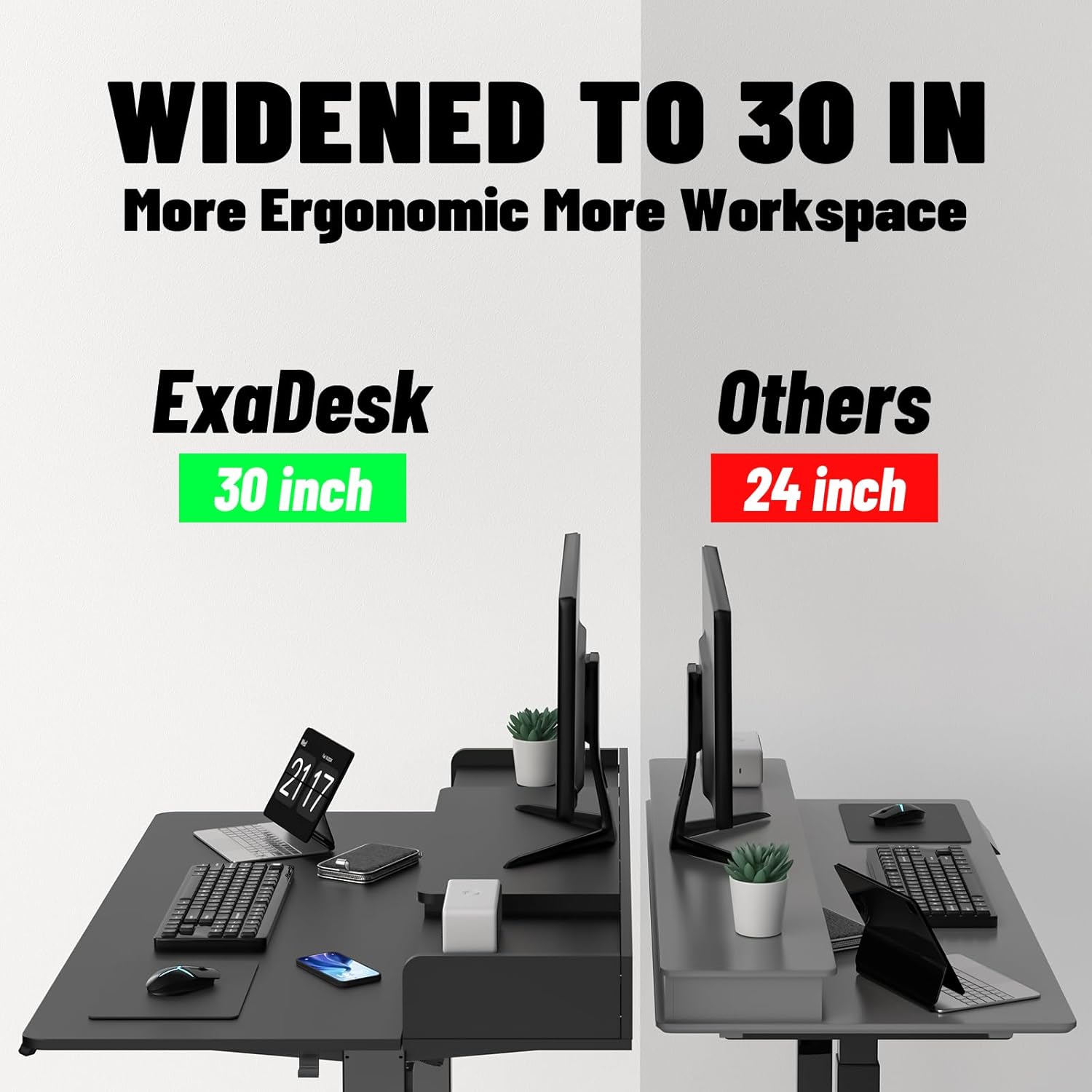 - 😃MORE ERGONOMIC AND MORE WORKSPACE: Widened to 30 Inches, Additional Workspace fully meets the space requirements for working time,Stand up desk with 2 Drawers for desktop organization