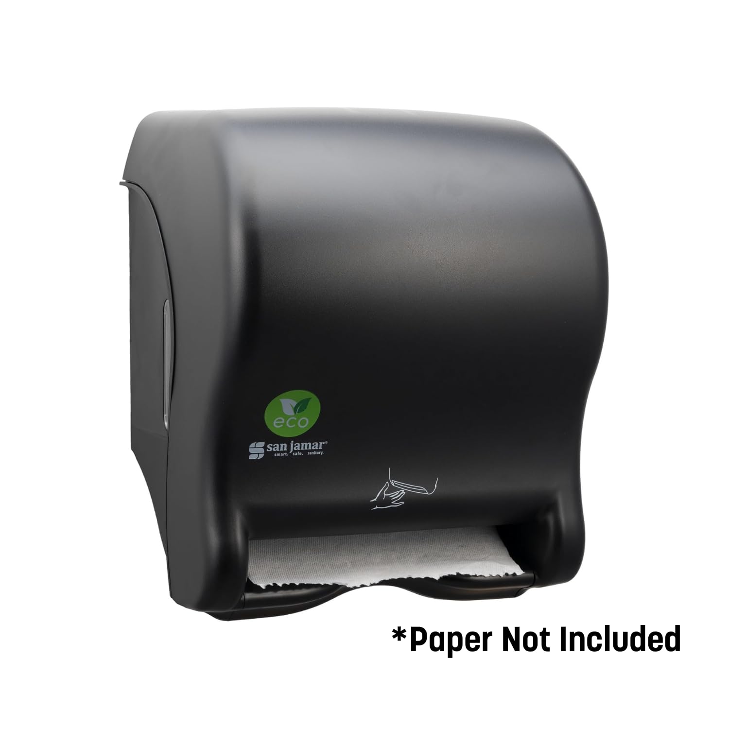 San Jamar Ecologic Smart Essence Recycled Plastic Electronic Paper Towel Dispenser, Universal Roll Capacity, Wall Mounted Dispenser with Zero Waste for Home and Business Universal, Black