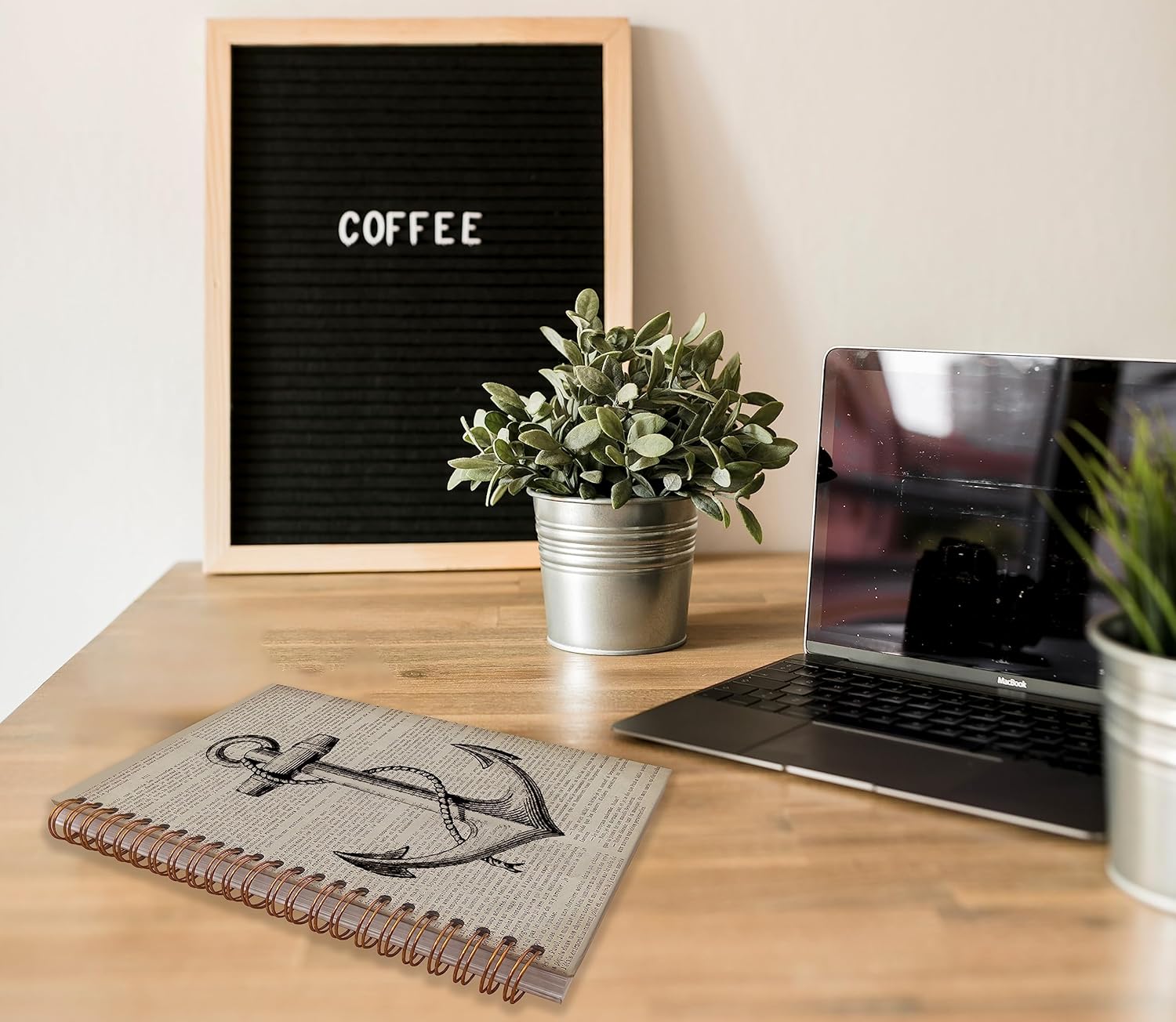 Vintage Nautical Anchor with Rope Dictionary Art Lined Spiral Journal Notebook 8.3×5.5 Inches Hardcover College Ruled Notebook Journal for Work Note Taking Journaling,Gifts for Ocean Lovers