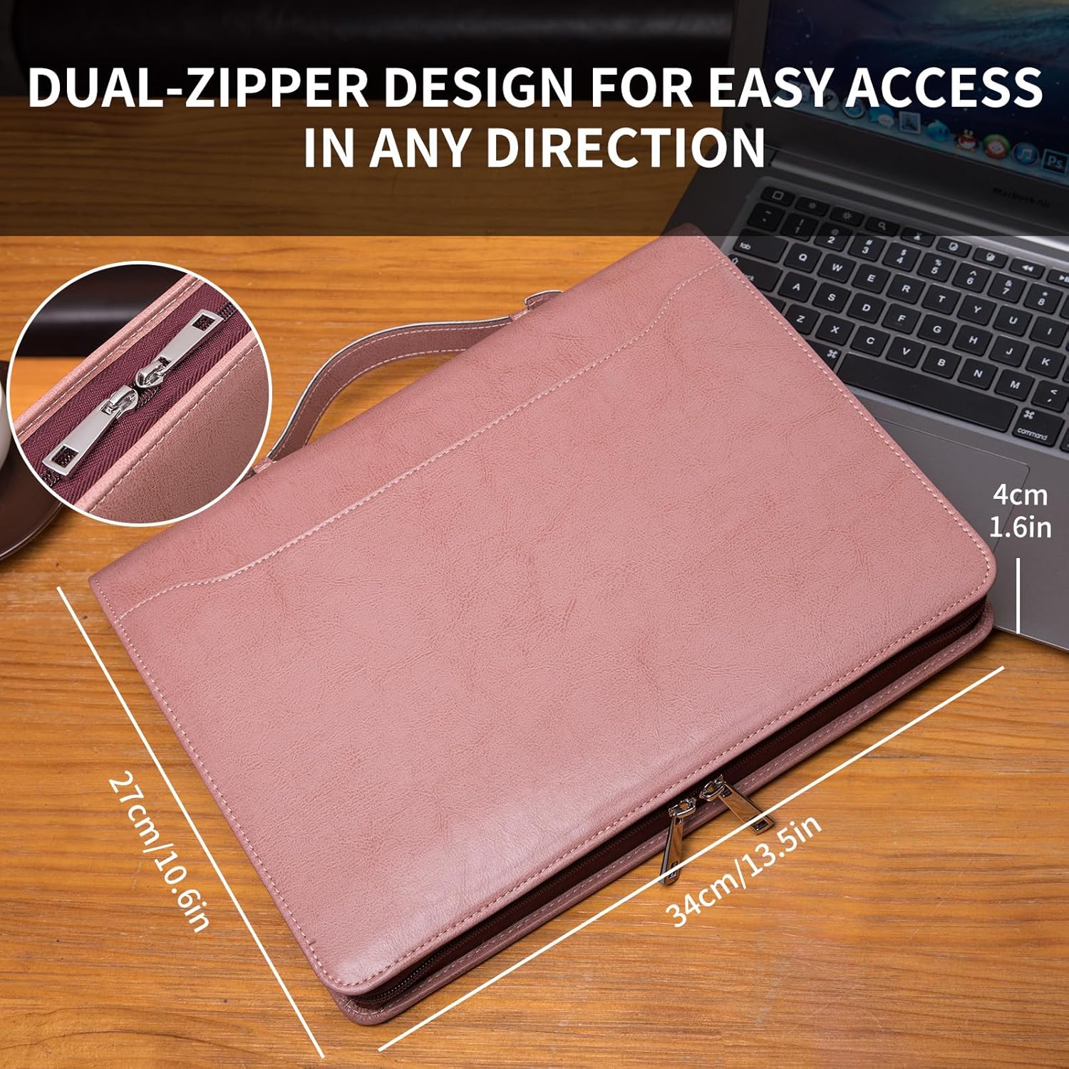 Personalized Vegan Leather Portfolio with Hidden Handle, Front Pocket, Custom Business Padfolio Tablet/13” Laptop Organizer, Professional Executive Document Folio, Pink