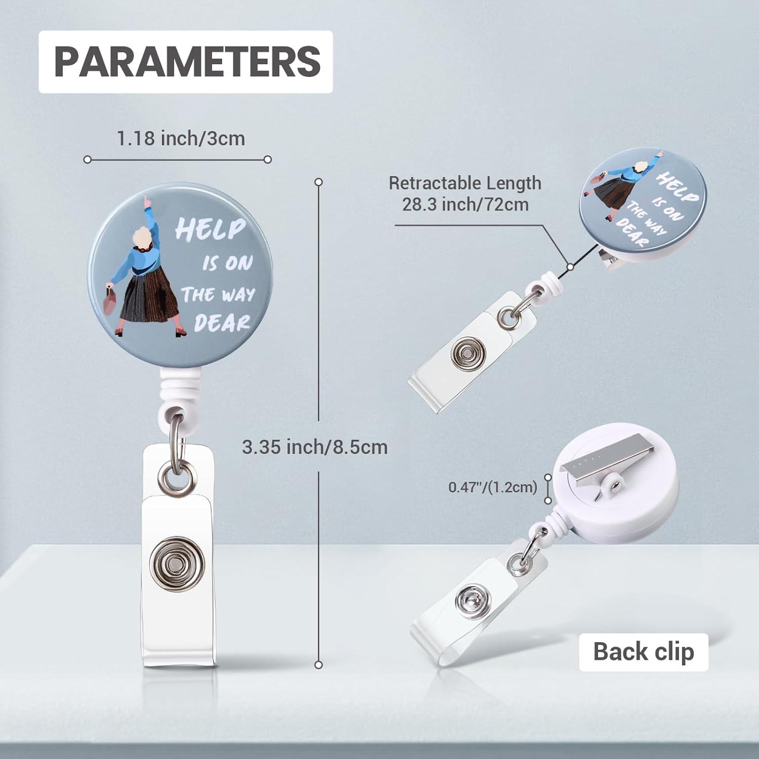 Badge Reel, Retractable Badge Clip for Nurse, Funny Badge Holder, Help is On The Way Dear Badge Reels, Retractable Lanyard for ID Badges, Mrs. Doubtfire Name Badge, Cute Nursing Gifts