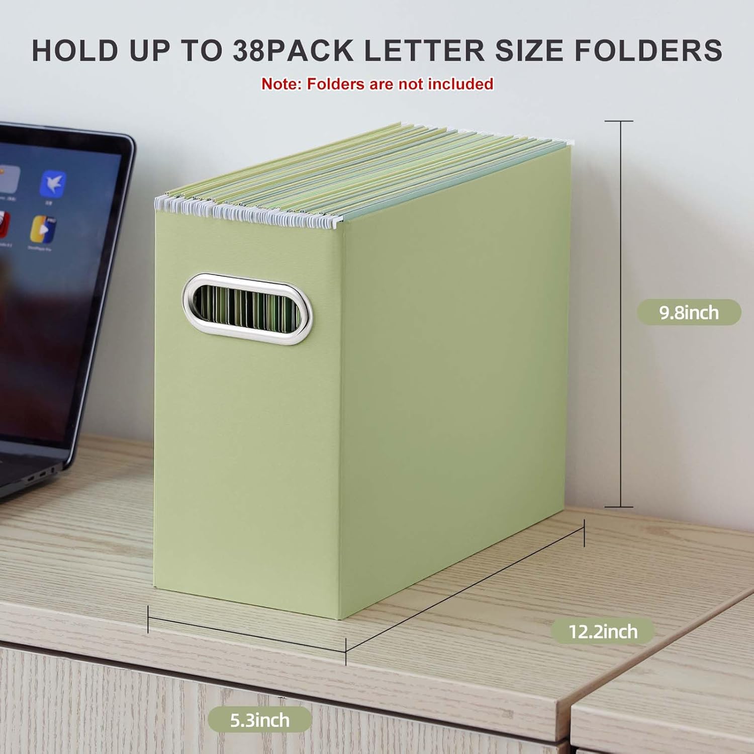 Oterri File Organizer, 6 Packs Small Storage Box, Cardboard File Folder Organizer, Collapsible File Box for Hanging File Folders Letter Size, Portable Filing Organizer with Handle(Green)