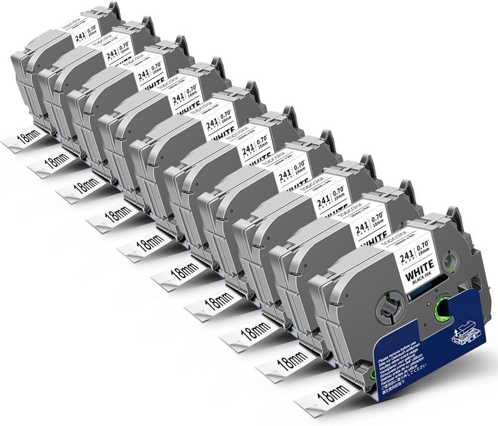 - Package Content: 10-Pack 18mm label tape compatible with Brother Tze241 Tze-241 Tz 241 Tz241 Tz-241 3/4" p touch label tze tz tape 18mm 0.7" Laminated White. Size: 3/4 inch (18mm 0.7") x 26.2 feet (8m). Color: Black on White