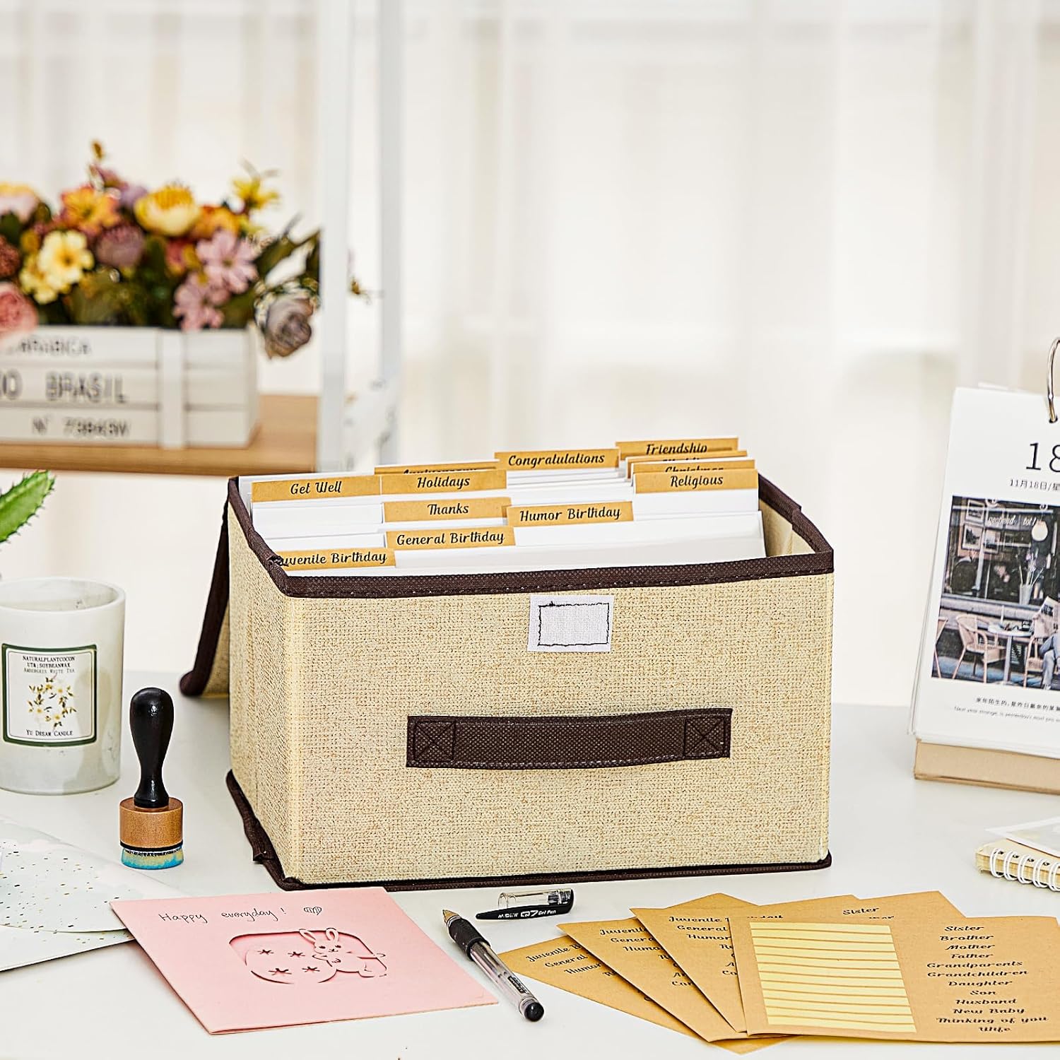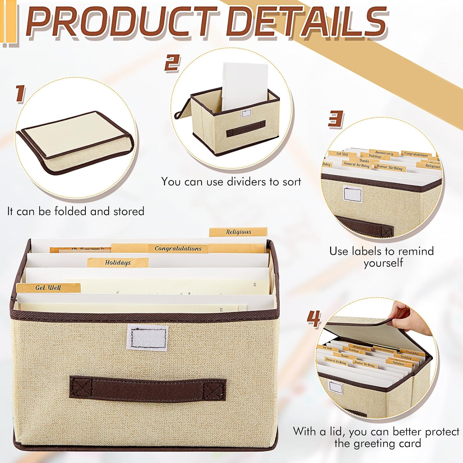 - Sturdy and Lasting: our greeting card box is made of quality linen material, and the lid is reinforced by density board and the box is placed in polypropylene sheet, strong and sturdy enough, not easy to break or deform, hard to fade, so you can use it with confidence for a long time