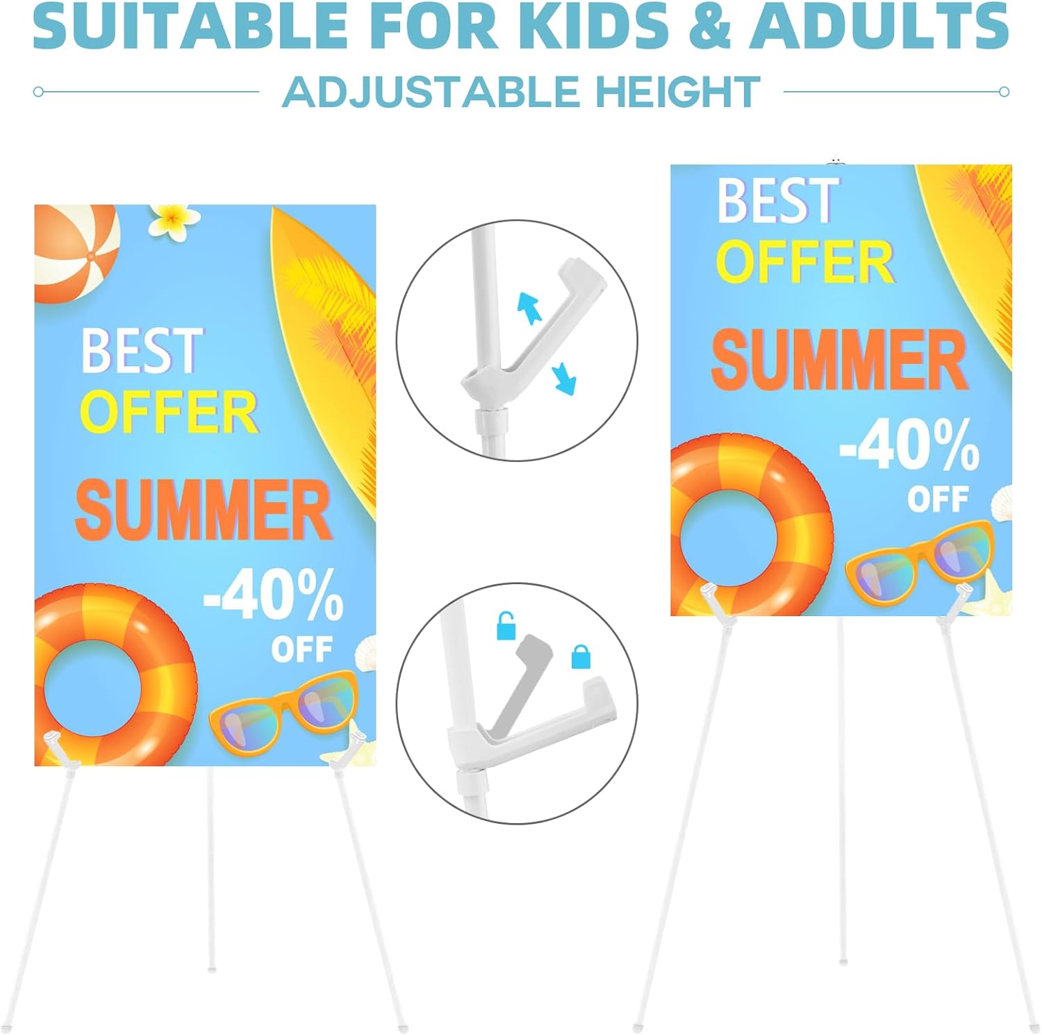 - Adjustable Height: Easily adjust the height with slide clips to suit posters, foam boards, or signs — great as a floor easel for art shows, presentations, or weddings