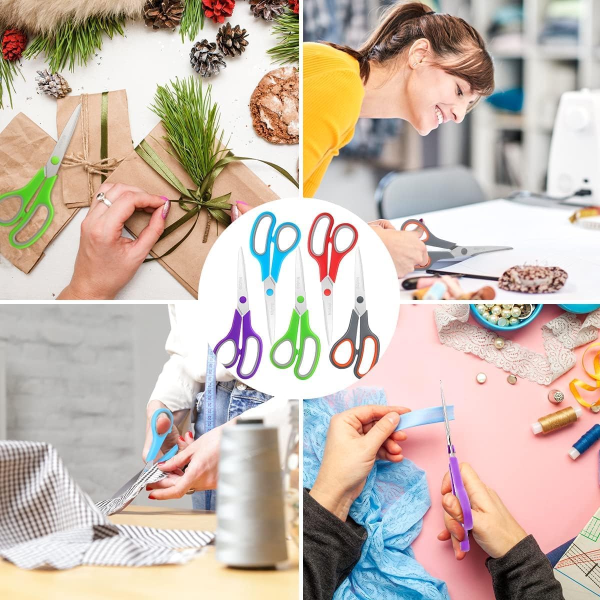 - Comfortable Use: Soft-grip handles for comfortable use, can be used left- or right-handed. Adjustable stainless-steel blade pivot for strength and smooth opening and closing. Work perfectly, and are comfortable in your hand.Can be used as scissors for office, scissors for school, scissors for home, 8 scissors, scissors bulk, Craft scissors, fabric Scissors, heavy duty scissors, scissors pack, Left scissors, sharp scissors, sewing scissors.