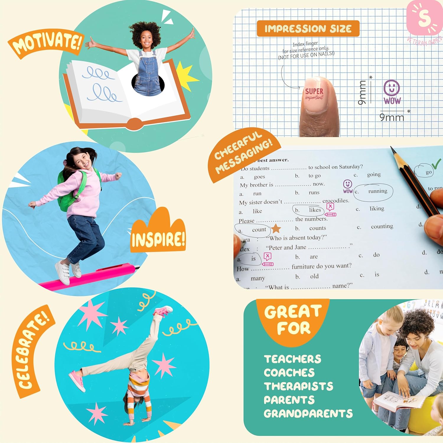 - Excellent for grading tests, homework, work in classroom, schools, art, science, music, PE, math, and literature classes. Inspire, motivate and communicate clearly to students in kindergarten, elementary, middle, high school, daycare, and any educational setting, etc. Keep students interested in learning while providing them a fun and exciting environment.