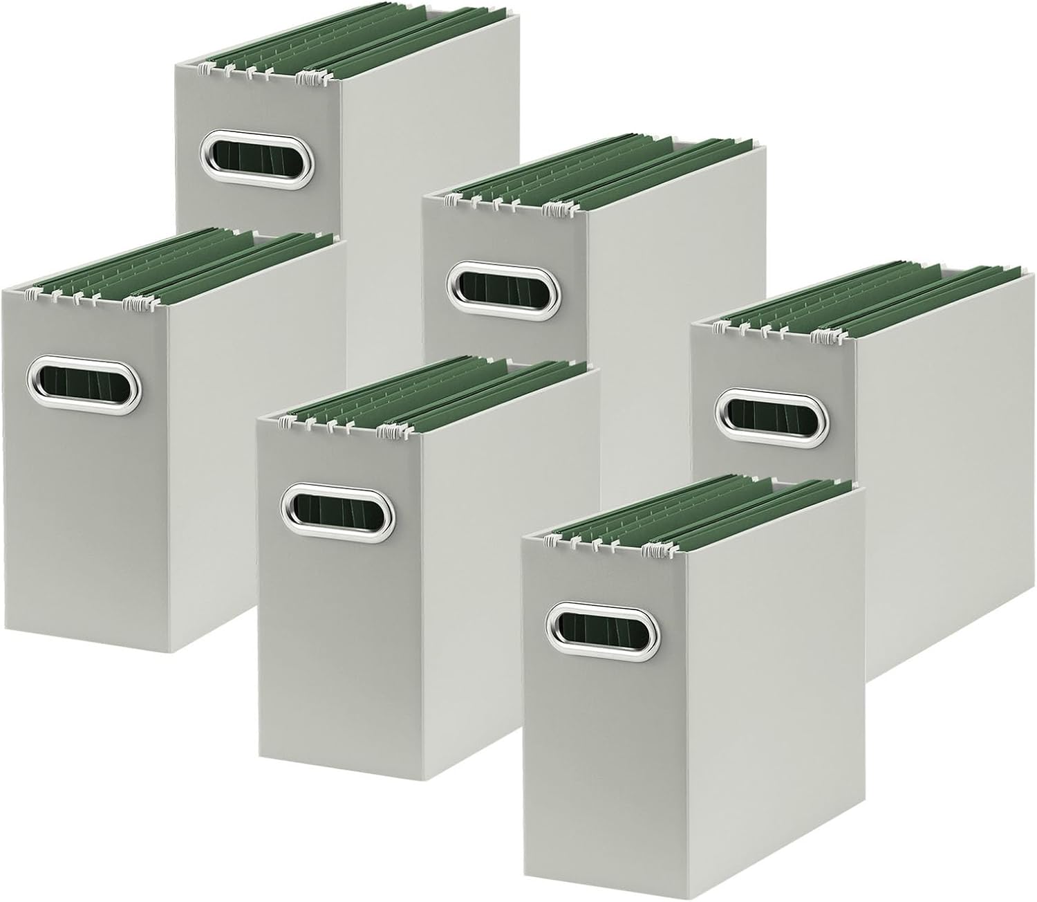Oterri File Organizer, 6 Packs Small Storage Box, Cardboard File Folder Organizer, Collapsible File Box for Hanging File Folders Letter Size, Portable Filing Organizer with Handle(Grey)