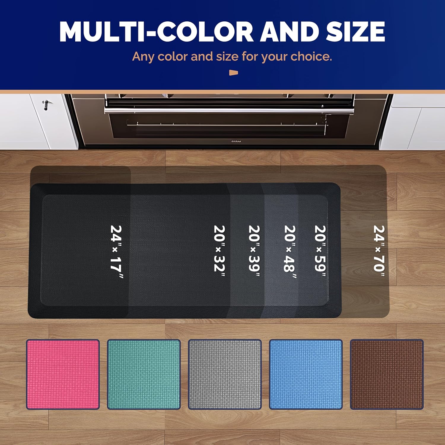 FEATOL Anti Fatigue Mat for Kitchen Floor, 9/10 Inch Thick Anti Fatigue Cushioned Floor Mat, Comfort Memory Foam Standing Padded for Sink, Kitchen, Home (Black, 24x70x9/10-Inch)