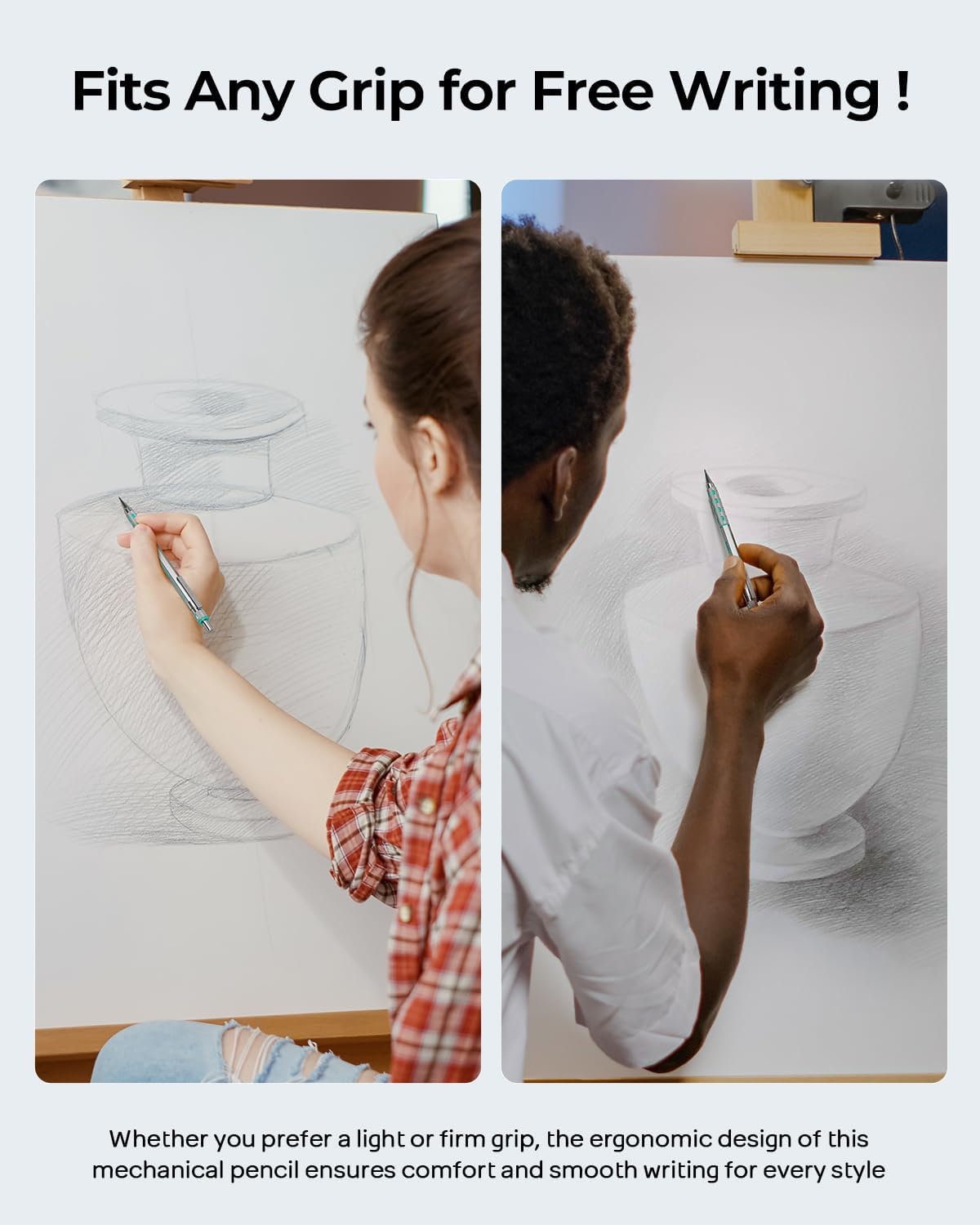 - Sleek Design: Full metal hexahedral barrel , house an adjustable hardness indicator, slim metallic mesh grip inlaid with comfortable rubber pads.Ideal weight balance for fatigue-free writing and drawing