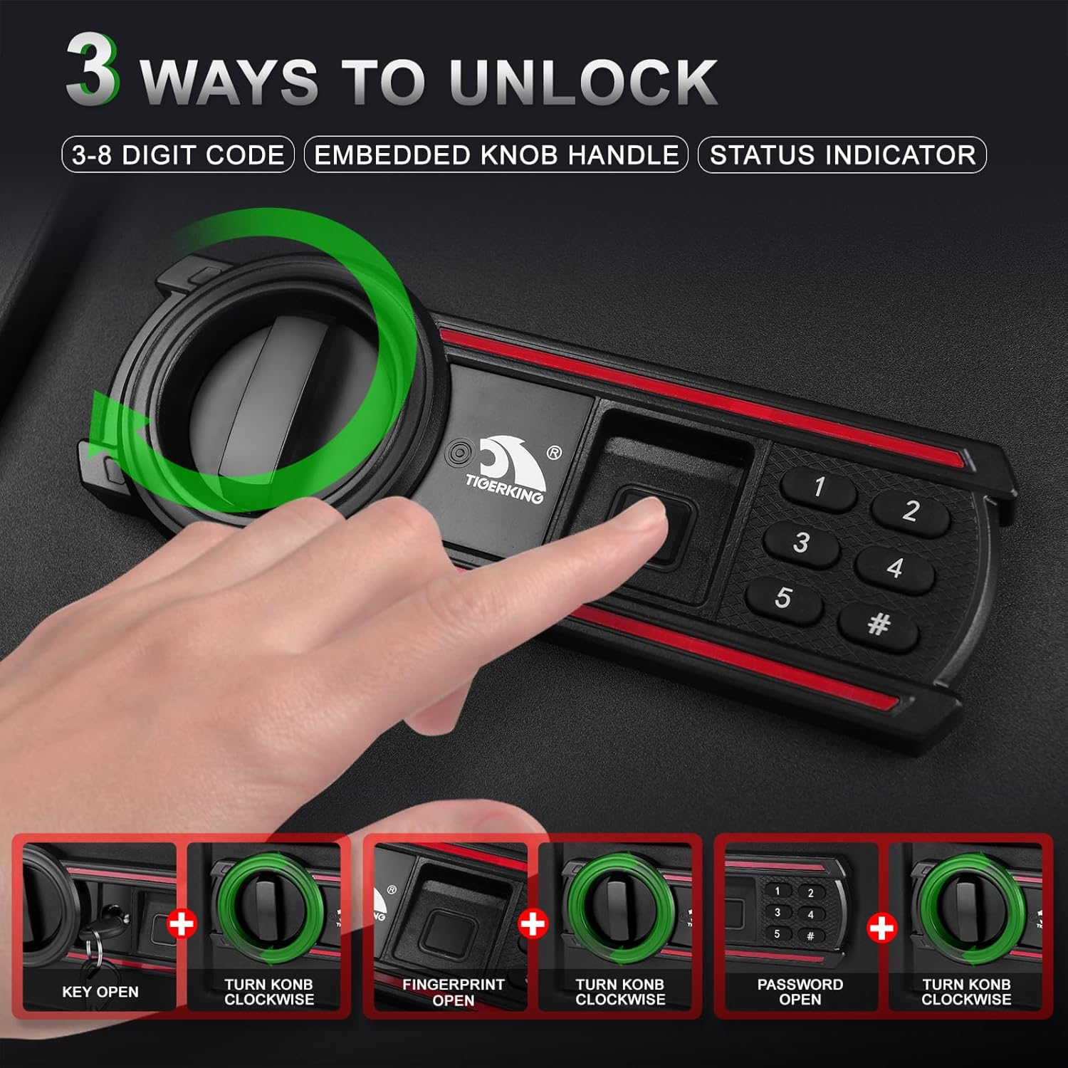 TIGERKING Biometric Fingerprint Safe Box, 1.8 Cubic Feet Digital Keypad Security Safes with Removable Shelf, Quick-Access Smart Biometric Safe for Home and Office