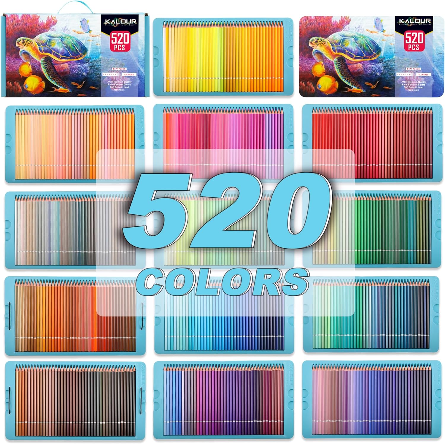 KALOUR Pro Colored Pencils,Set of 520 Colors,Artists Soft Core with Vibrant Color,Ideal for Drawing Sketching Shading,Coloring Pencils for Adults Artists Beginners