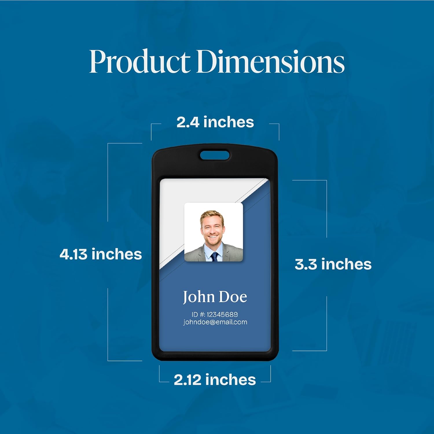 - Package Includes: You will get 6 pieces of black color vertical id badge holders. The size is 10 cm x 6.1 cm / 4.13 inch x 2.4 5inch, inner size is 8.4 x 5.4cm / 3.3 inch x 2.12 inch. Fit 2 standard-sized cards.