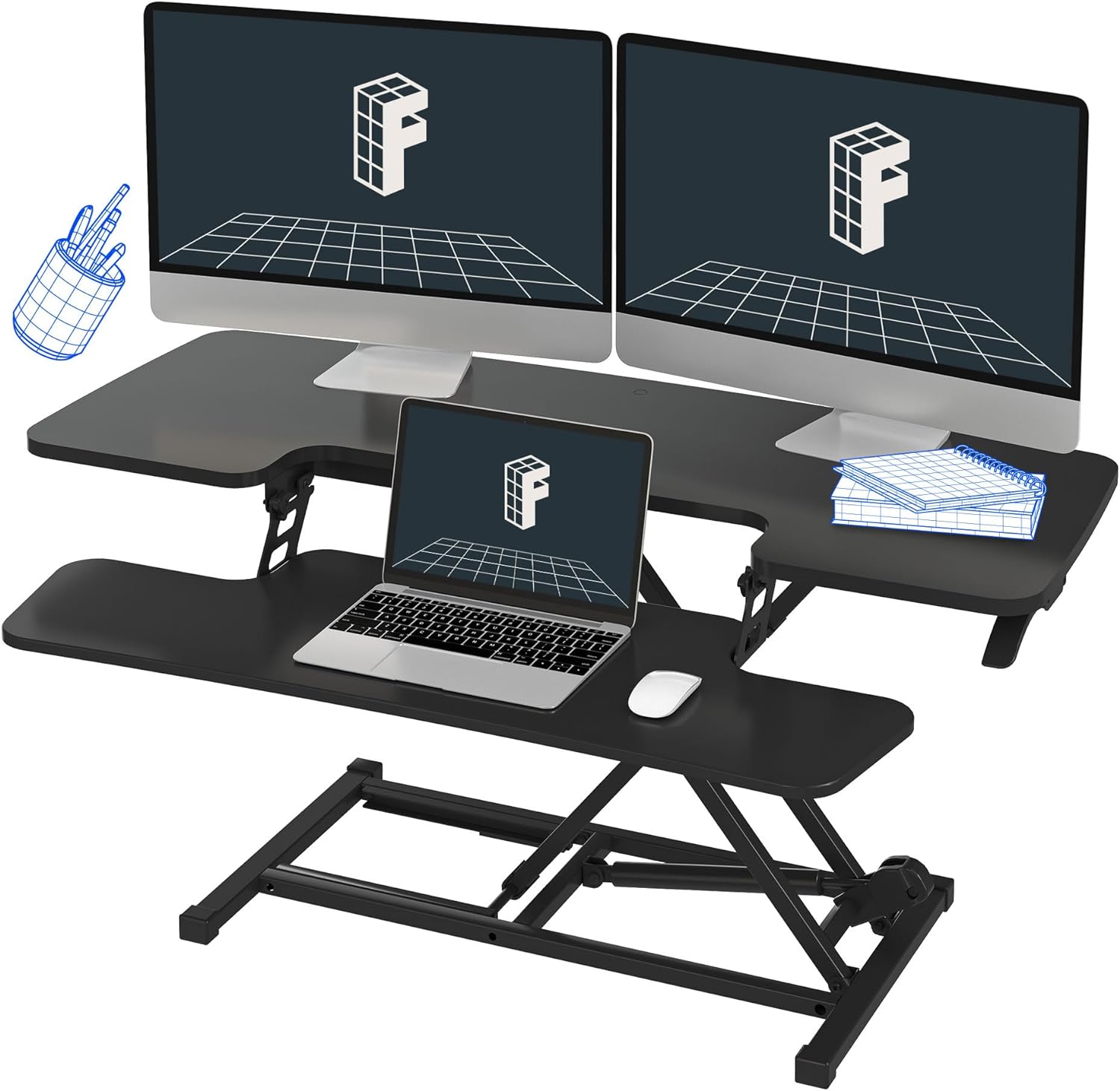 FLEXISPOT Sit to Stand up Desk Riser 42in Standing Desk Converter Height Adjustable Computer Workstation with Large Keyboard Tray Black