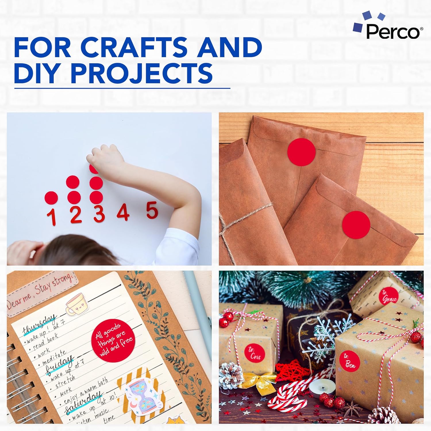 Perco Red 2-Inch Round Circle Dot Sticker Labels with Easy Peel Perforation - 500 Labels per Roll - Strong Adhesion, Vibrant Colors for Organizing, Crafting & More - Made in USA
