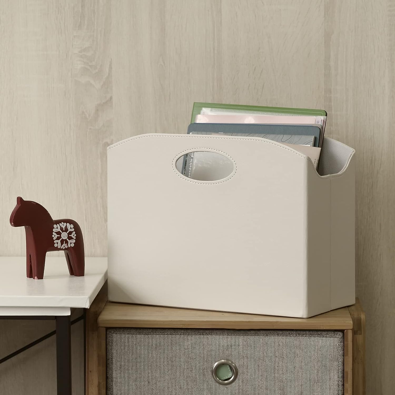 EZDeco Magazine Holder Foldable Magazine Rack Floor PU Leather File Holder Newspaper Book Storage Basket Document File Folder Organizer for Office Home (Off-white-2)