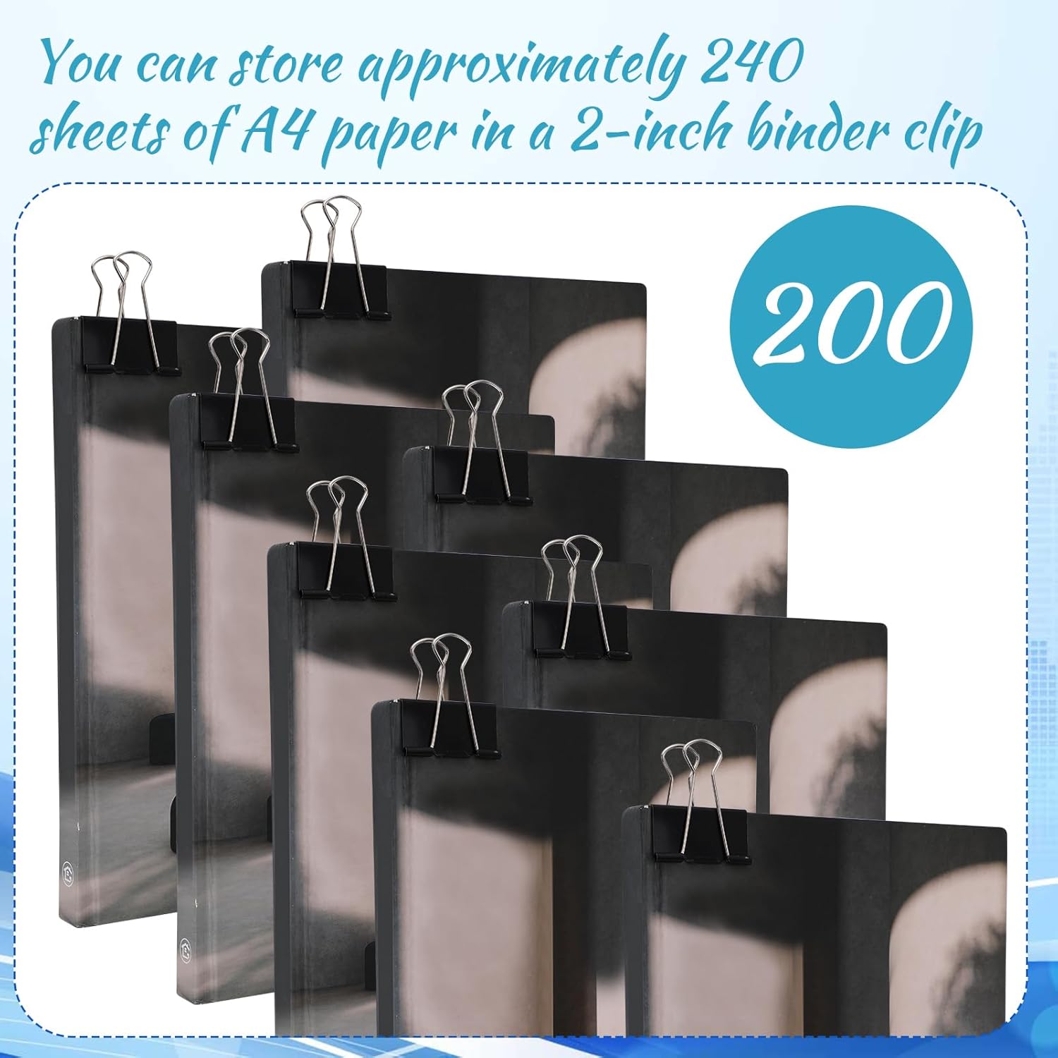 Jetec 200 Pcs Extra Large Binder Clips Bulk 2 Inch Metal Jumbo Binder Clips Office Supplies Black Paper Clamps for Teachers Students Office Business Supplies