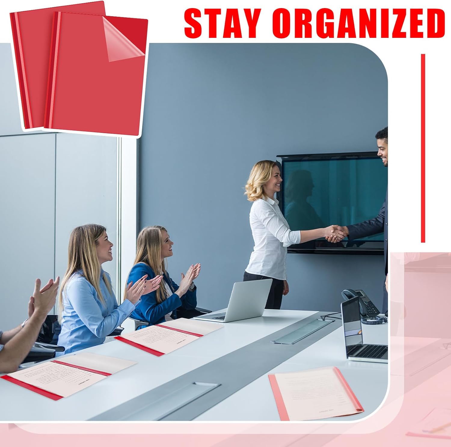 Teling 150 Pcs Plastic Report Covers with 3 Prong Clear Front Resume Folder Business Report Covers Bulk Presentation Folders Clear Front Report Folders for Documents, School, Office(Red)