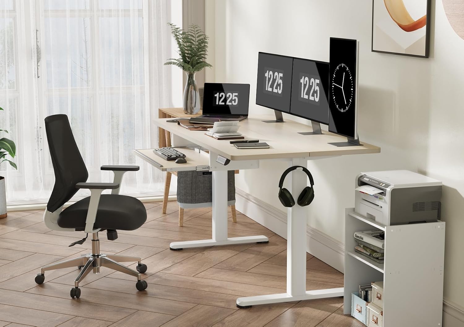 Claiks Standing Desk with Keyboard Tray, Electric Standing Desk Adjustable Height, 55x24 Inches Sit Stand up Desks with Splice Board, Raising Desks for Home Office, Natural