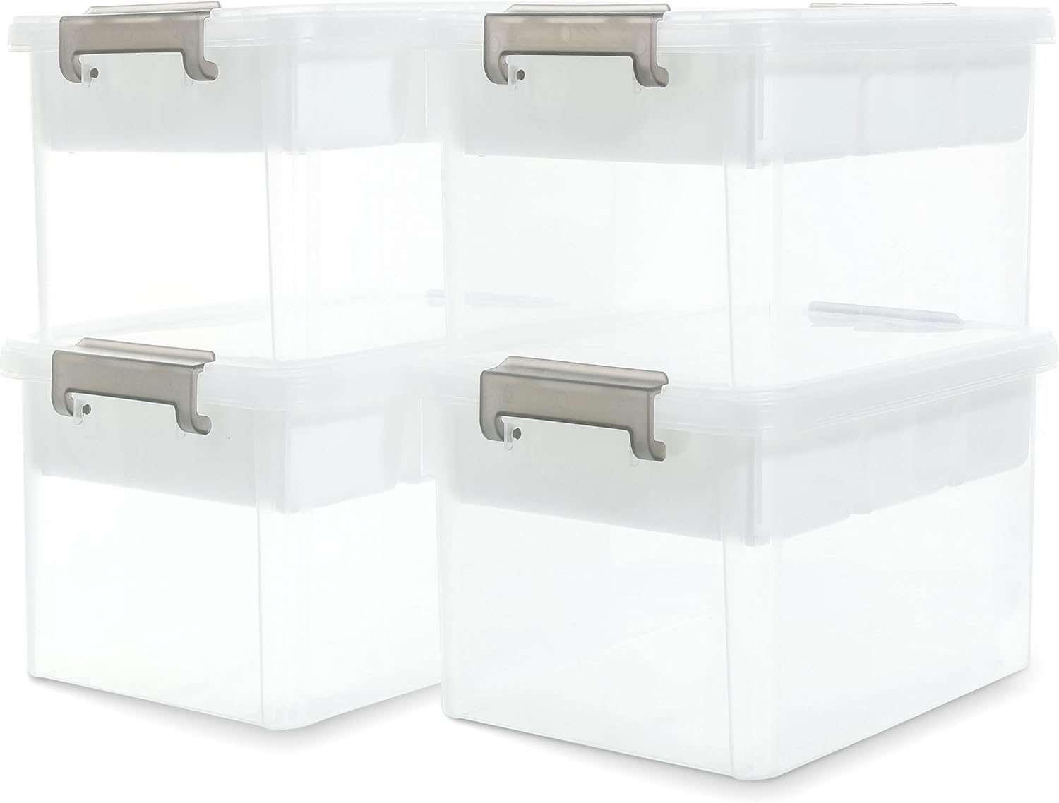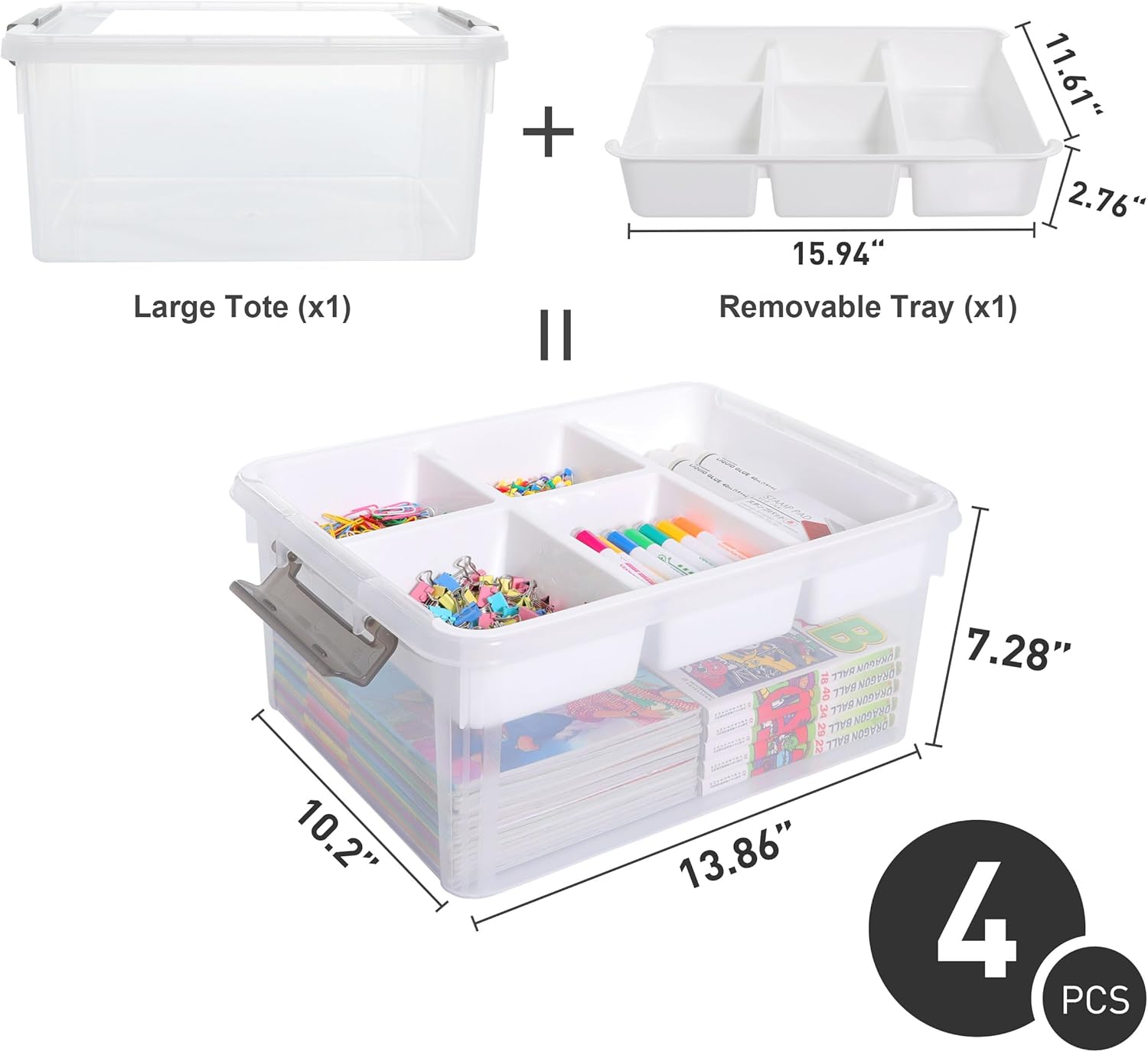 Citylife 17 QT Storage Box with Removable Tray Closet Organizers and Storage Clear Storage Container for Organizing, Craft, Tools, Files, Office Supplies, 4 Packs