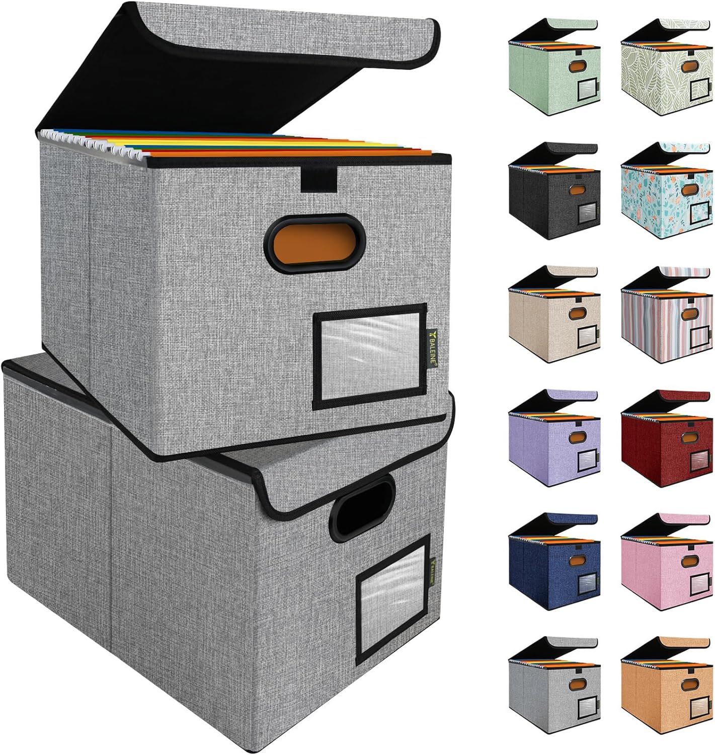 - [DURABLE MATERIAL] The outer layer of our filing box is crafted from high-quality polyester fabric and reinforced with thick cardboard in the middle. This construction ensures that the box maintains its shape and provides better bearing capacity for important documents and files. Its textured appearance can also serve as a stylish decorative element in any office or home.