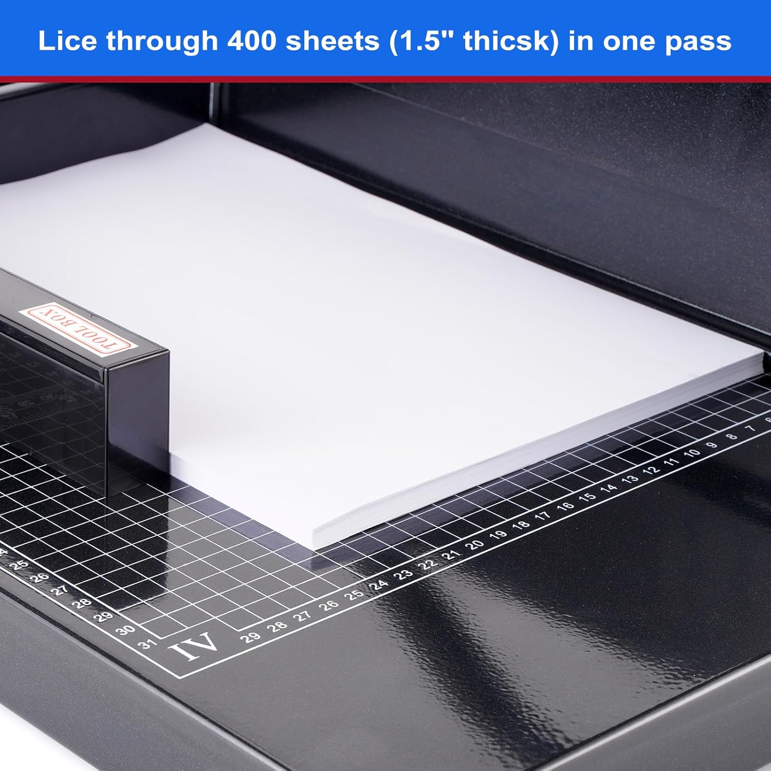 - ★【Wide Application】Paper cutter heavy duty with a maximum cutting length of 12” allows to cut up to 400 sheets of paper (for 80g A4 Paper) once; Besides common paper, our heavy duty paper cutter can also cut something like soft PVC, leather, non-woven fabric, bubble film, fabric pearl cotton and etc, meeting your different cutting needs to the greatest extent& suitable for homes, classroom, offices, companies, printing factories, copy shop, etc..
