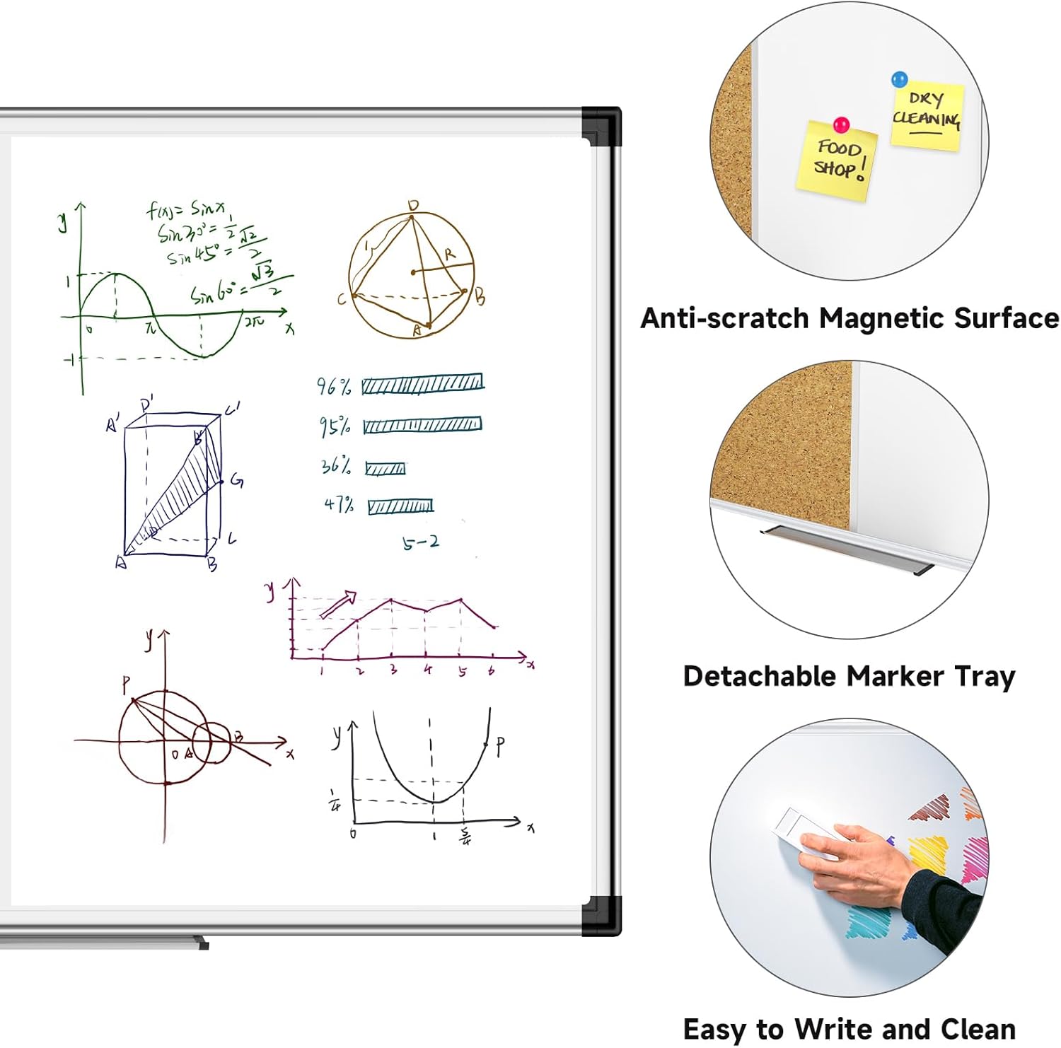 XBoard Large Magnetic White Board and Bulletin Corkboard Combination, 48 x 36 Inch Half Dry Erase & Cork Combo Board for Wall with Aluminum Frame, 4' x 3' Notice Memo Board Pin Board Vision Board