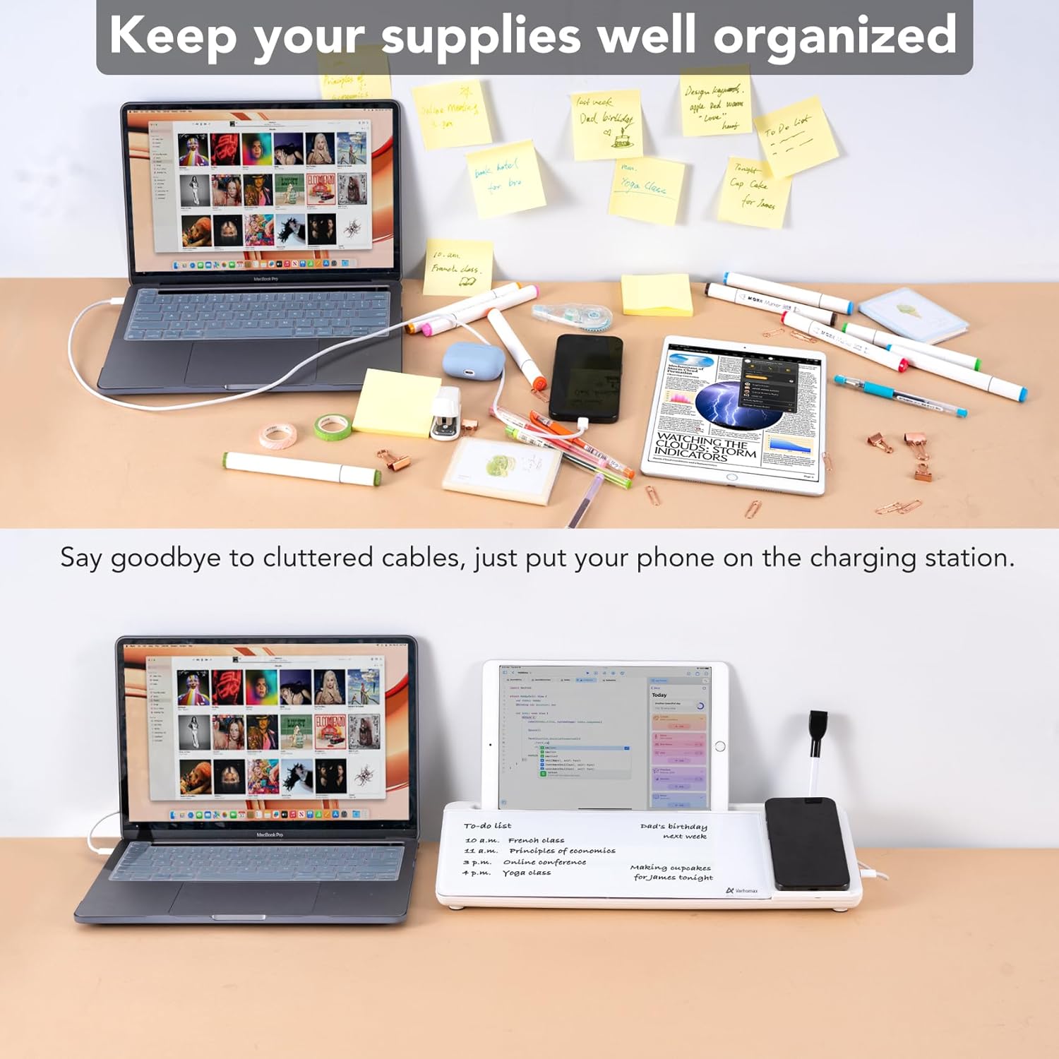 - Multi-functional Design: Sitting compactly between your monitor and keyboard, you can use it as a desk to do list whiteboard, or phone charger, or phone/tablet holder, or keyboard stand. It can used for your office task organization, family schedule and workout plan