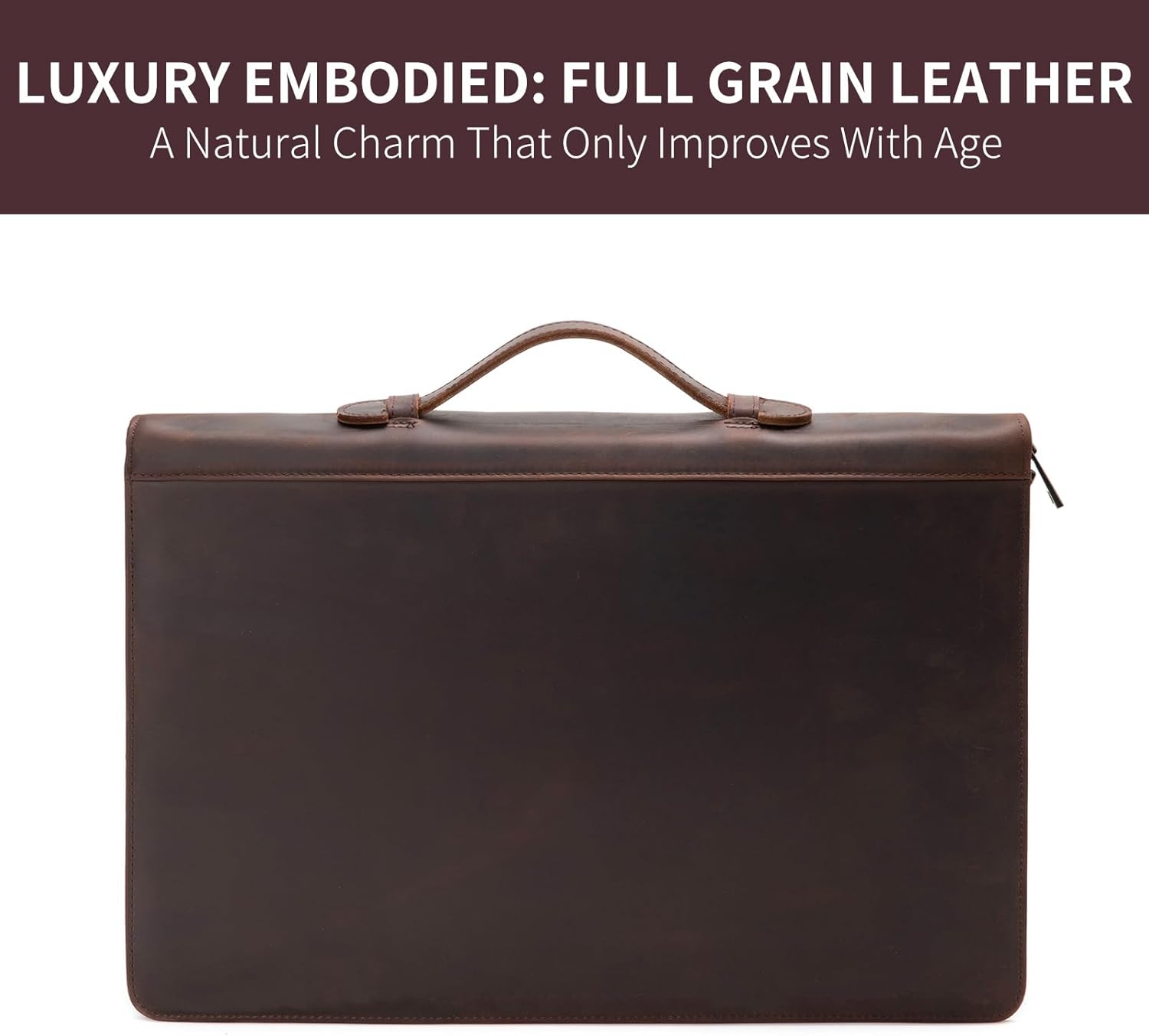 - Multi-Function 15" Laptop Portfolio: Feature a dedicated double-layer pocket tailored to securely hold a 15" laptop. Within this specialized pocket, you'll find a large file sleeve, ideal for organizing important documents, while an inside YKK zipper pocket keeps smaller essentials safe and accessible. Furthermore, a medium open slot within the same pocket adds versatility, accommodating various items.