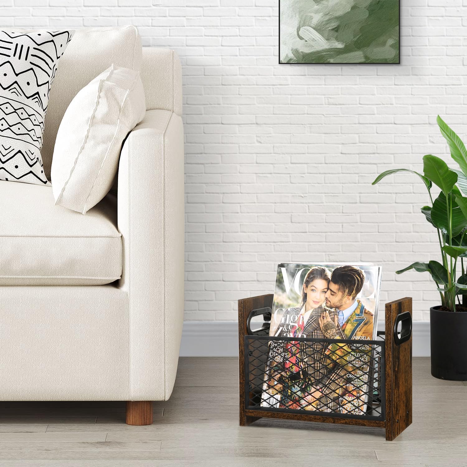- Space Saving: Our magazine file holder sizes are about 11.6"LĂ5.0"WĂ9.5"H. Perfect size for a relatively small living room area. Rustic magazine rack helps reduce magazine clutter and keeps them all in one place. It looks great in your living room and keeps your floor or desktop organized.