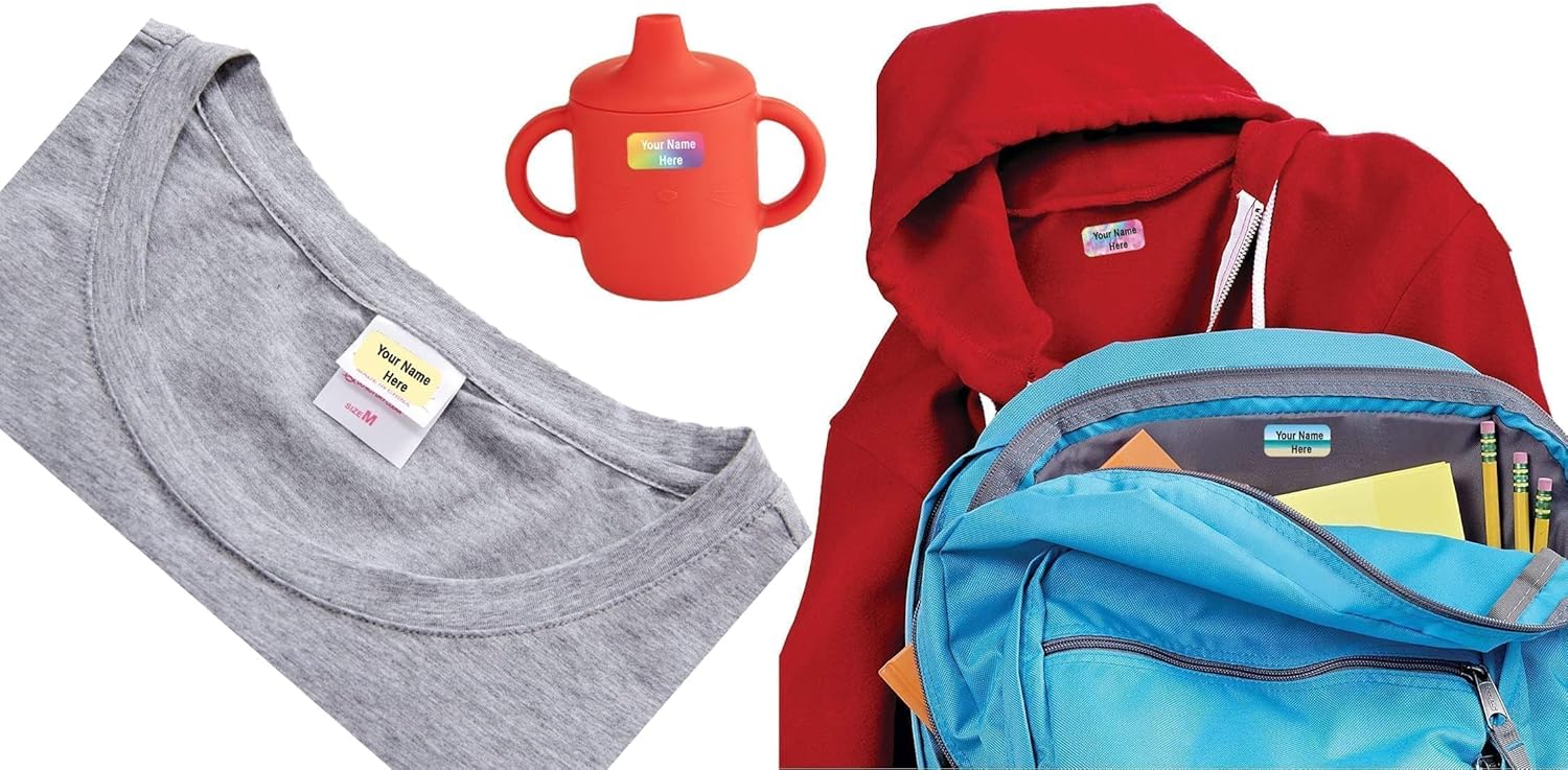 - When applying your labels PRESS FIRMLY! Really give’em a good going over with your thumb or squeeze the label and the care tag between your thumb and fingers more pressure means more stick! Also make sure there aren’t and bubbles under the labels and that all of the edges are stuck. That way, water won’t get under the label and loosen the bond. For hard goods, just peel and stick. Remember: pressure=good, air bubbles-bad!